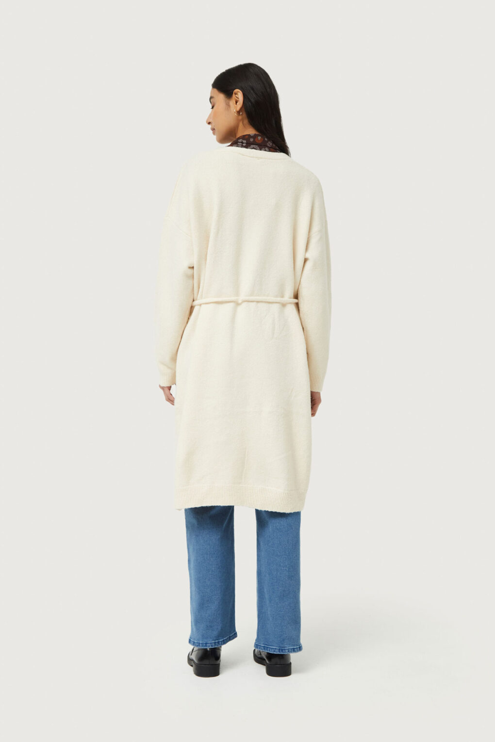 Χωρίς κουμπιά, η ζακέτα αναδεικνύει έναν μοντέρνο, αβίαστο σχεδιασμό που επιτρέπει την ελεύθερη κίνηση. Η ζώνη από το ίδιο υλικό προσφέρει τη δυνατότητα να προσαρμόσετε τη σιλουέτα κατά βούληση, τονίζοντας τη μέση σας και προσθέτοντας μια επιπλέον πινελιά στυλ.