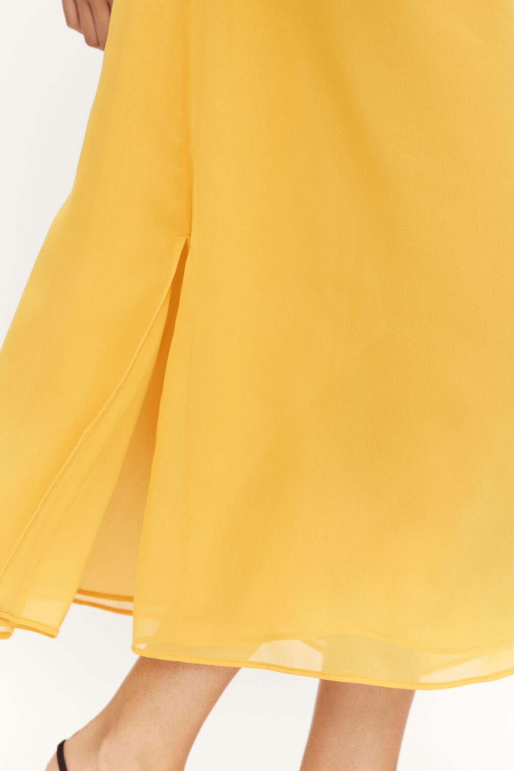Το Compania Fantastica Long Yellow Dress από ύφασμα chiffon αναδύει μια αίσθηση ελαφρότητας και κομψότητας.