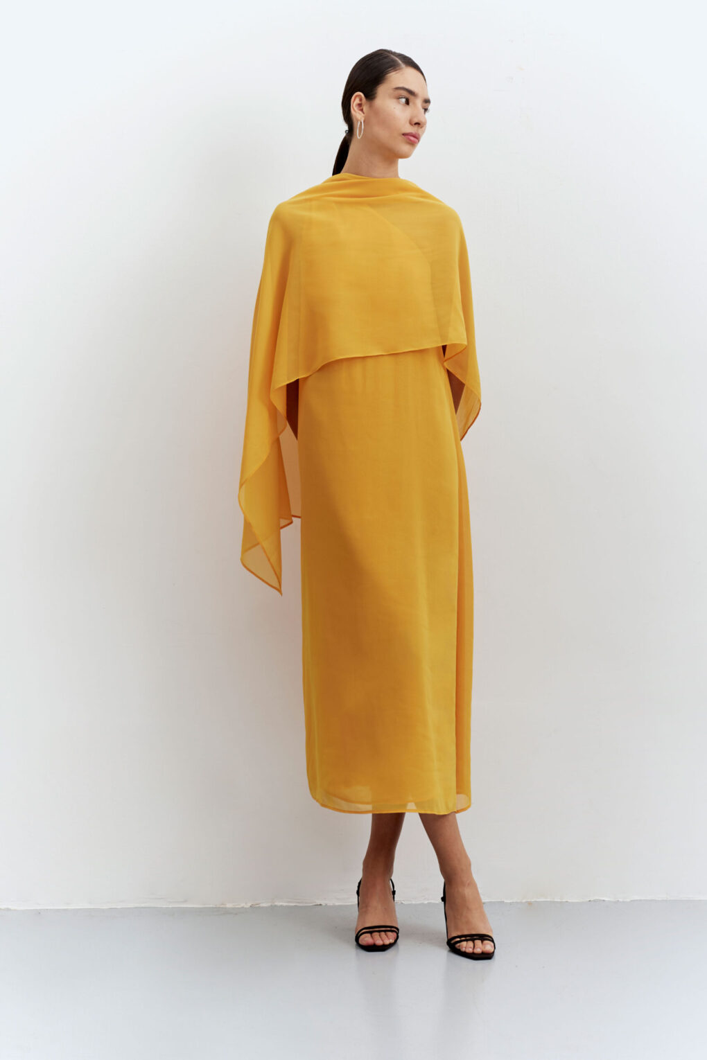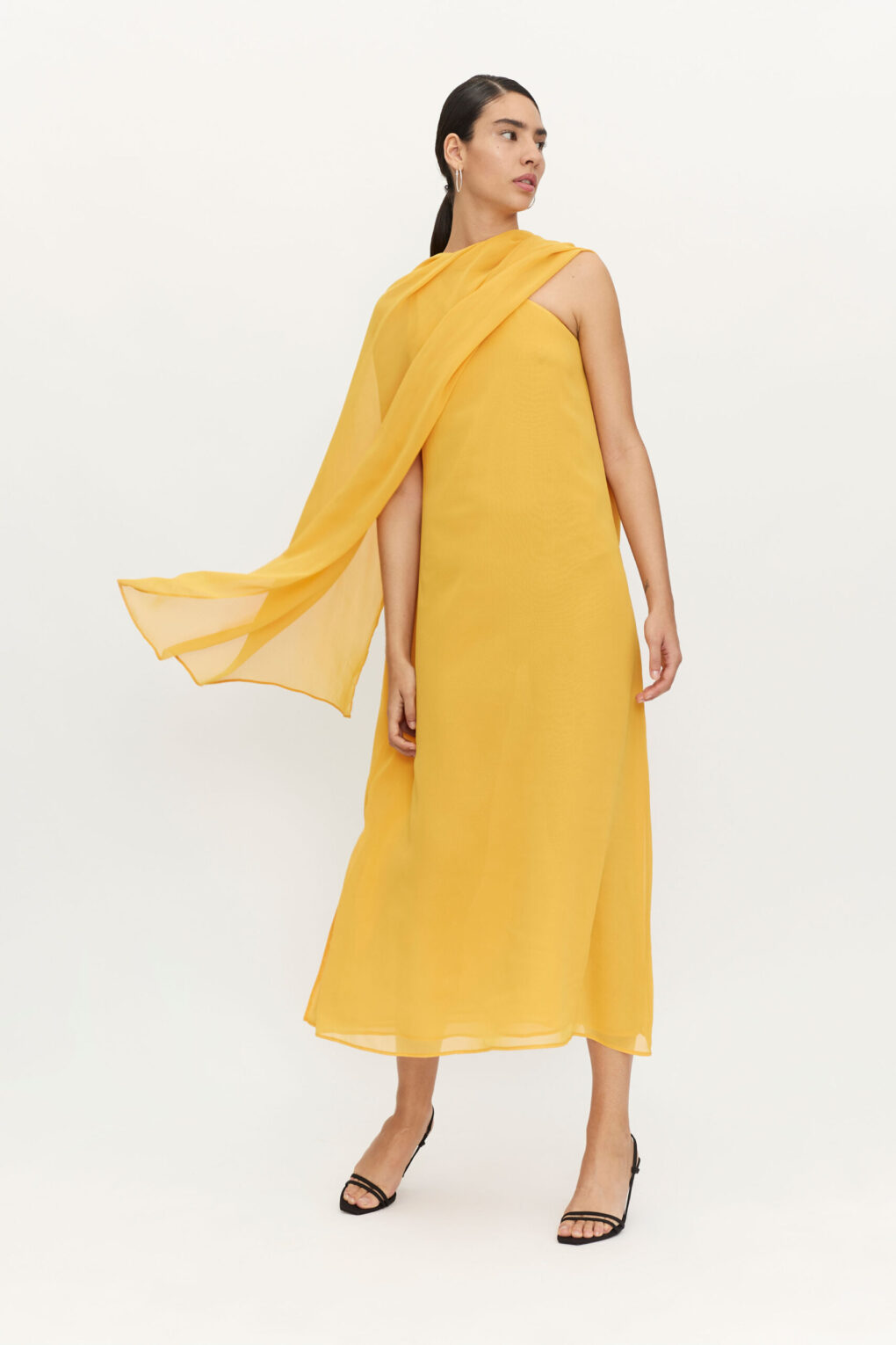 Compania Fantastica Long Yellow Scarf Asymmetrical Dress
