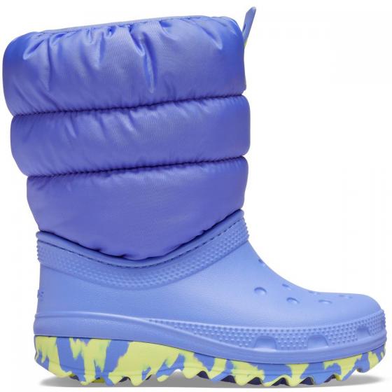 Οι απόλυτες χειμερινές παιδικές μπότες είναι εδώ! Οι Crocs Classic Neo Puff Boot συνδυάζουν απίστευτη άνεση, ελαφριά κατασκευή και extra ζεστασιά χάρη στο μαλακό, χνουδωτό εσωτερικό. Το φουσκωτό νάιλον στο επάνω μέρος προστατεύει από το κρύο, ενώ η τρακτερωτή σόλα προσφέρει σταθερό και ασφαλές πάτημα σε κάθε βήμα. Ένα ζευγάρι μπότες που θα γίνουν τα αγαπημένα παπούτσια των μικρών μας φίλων για όλες τις χειμερινές περιπέτειες.
