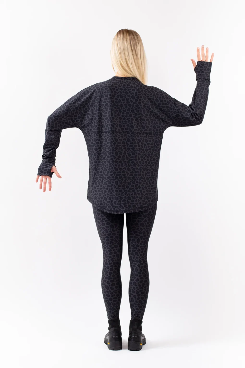 Το Venture Top – Black Leopard είναι ένα πολυχρηστικό base layer με μακρύ μανίκι και εντυπωσιακό λεοπάρ μοτίβο. Σχεδιασμένο για δραστηριότητες κάθε εποχής. Με ελαφρώς oversized εφαρμογή, μακρύτερο πίσω μέρος και ενσωματωμένους θηλιές για τους αντίχειρες, είναι ιδανικό για αθλητικές και casual εμφανίσεις.