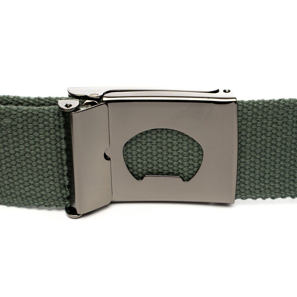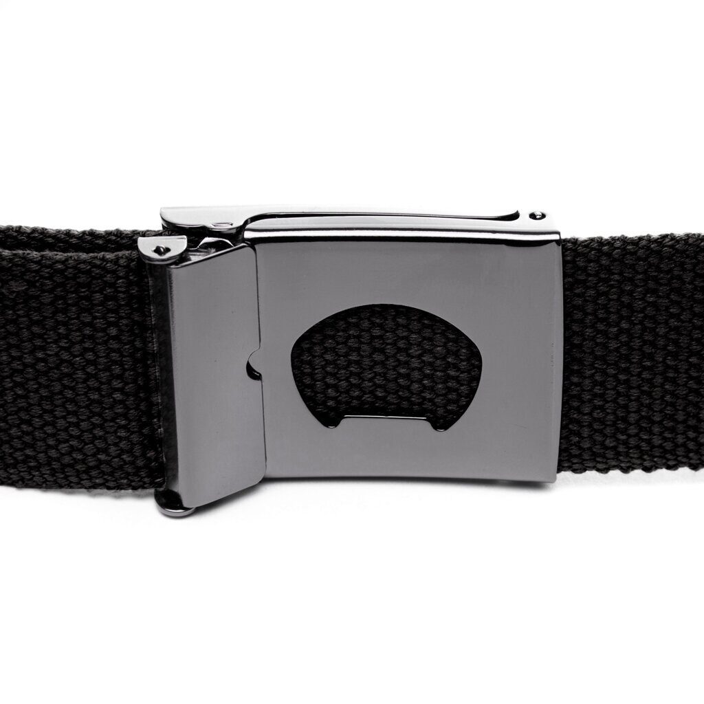 Add this classic Idol belt to your cart. It has a metal buckle and a high-quality cotton strap. As a bonus, you will find a beer opener on the back of the buckle. The Idol is 120 cm long, and absolutely everyone can solve the problem of falling pants with it.