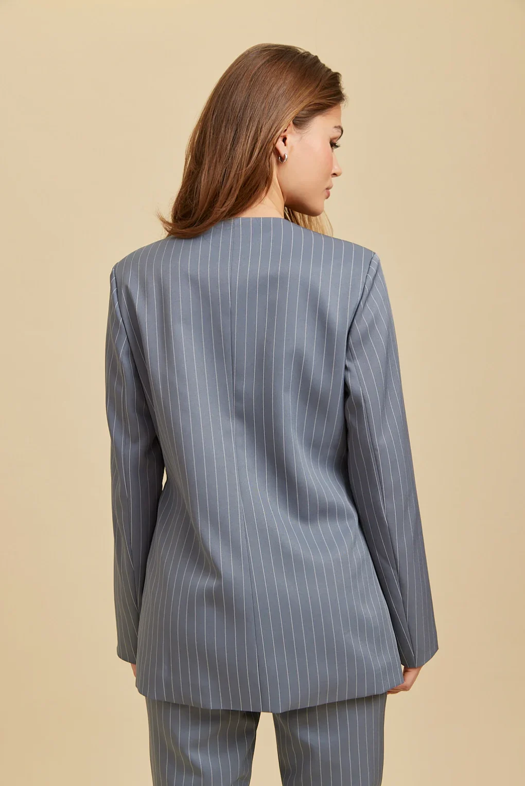 Αυτό το πανέμορφο Janice Blazer σε απόχρωση “stone blue” με ρίγες είναι ένα κομμάτι που δεν πρέπει να λείπει από καμία γκαρνταρόμπα.