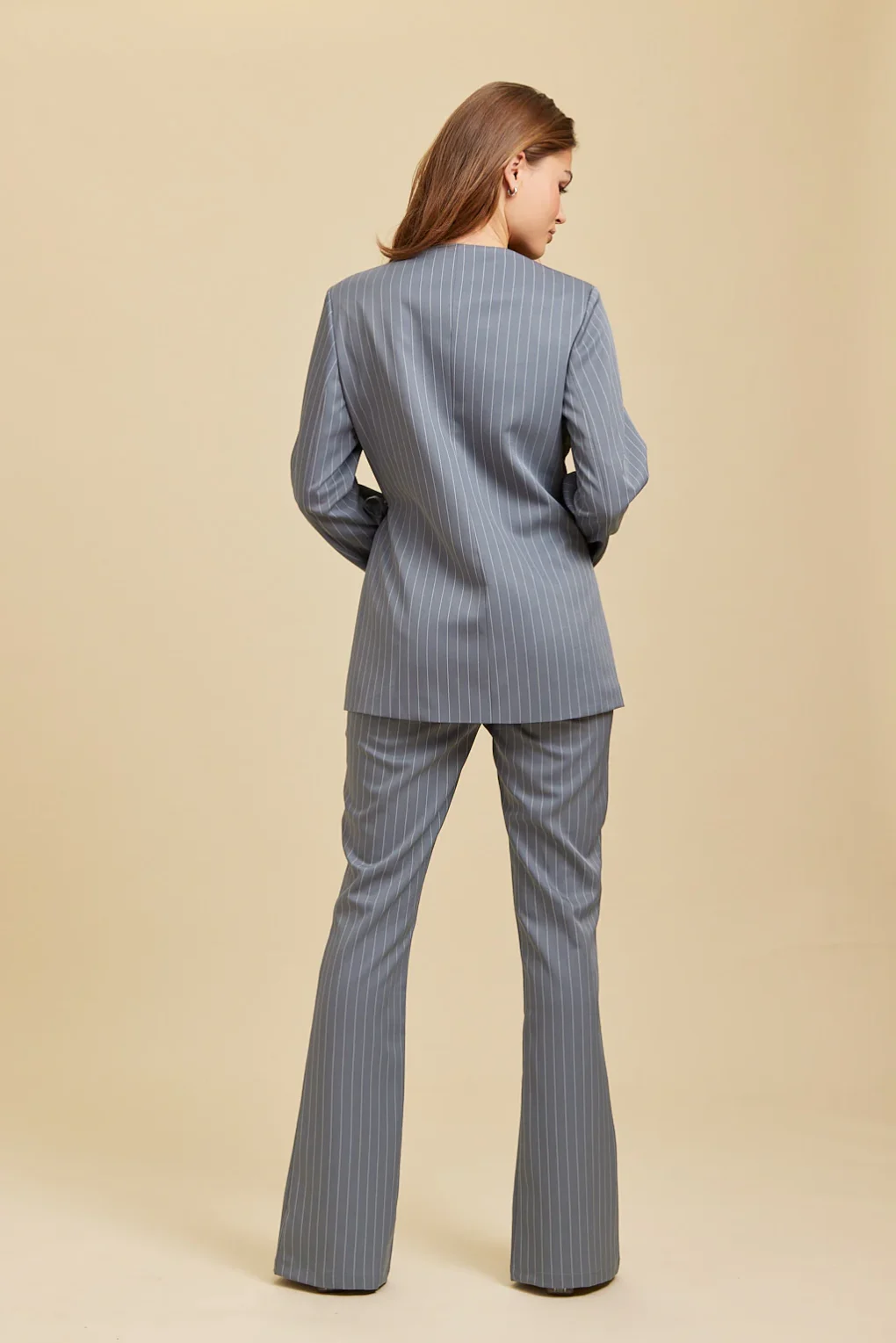 Αυτό το πανέμορφο Janice Blazer σε απόχρωση “stone blue” με ρίγες είναι ένα κομμάτι που δεν πρέπει να λείπει από καμία γκαρνταρόμπα. Ο σχεδιασμός του με το κρουαζέ κλείσιμο, τα ενισχυμένα ώμους και τα μακριά μανίκια προσδίδει ένα εντυπωσιακό και δυναμικό στυλ, ιδανικό για κομψές και μοντέρνες εμφανίσεις. Το σακάκι αναδεικνύει τη σιλουέτα και προσφέρει μια ισορροπία μεταξύ κλασικής και σύγχρονης αισθητικής.