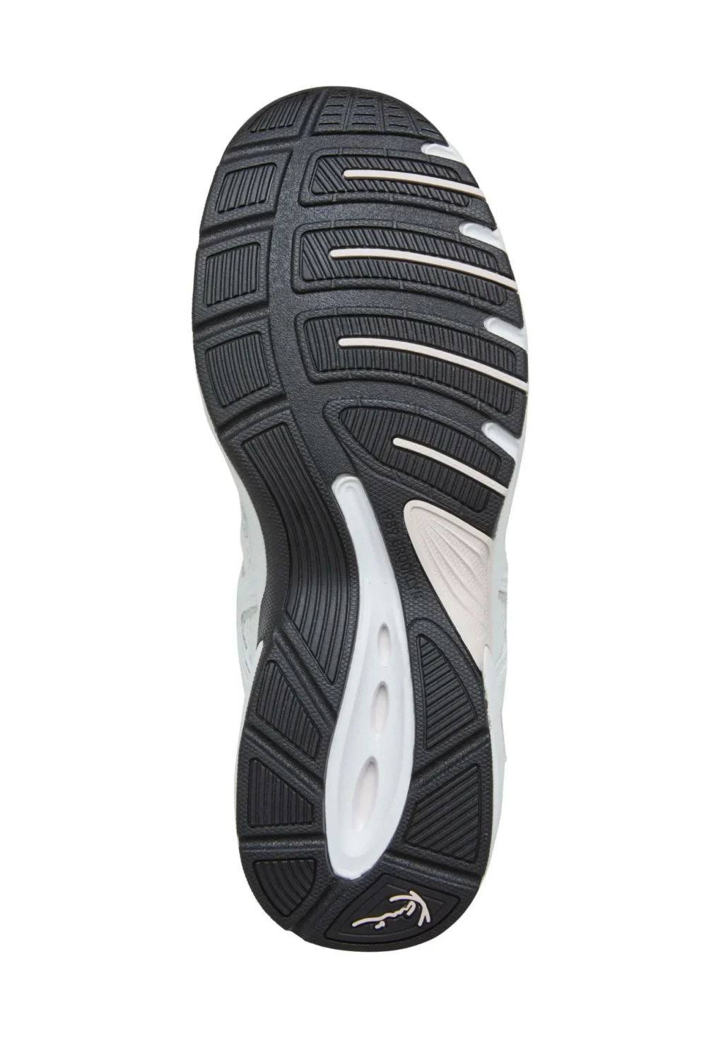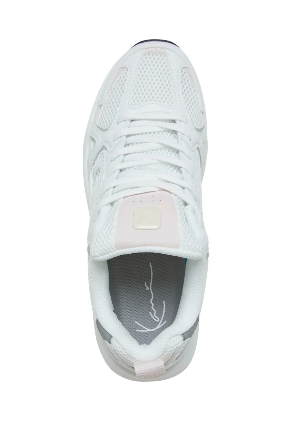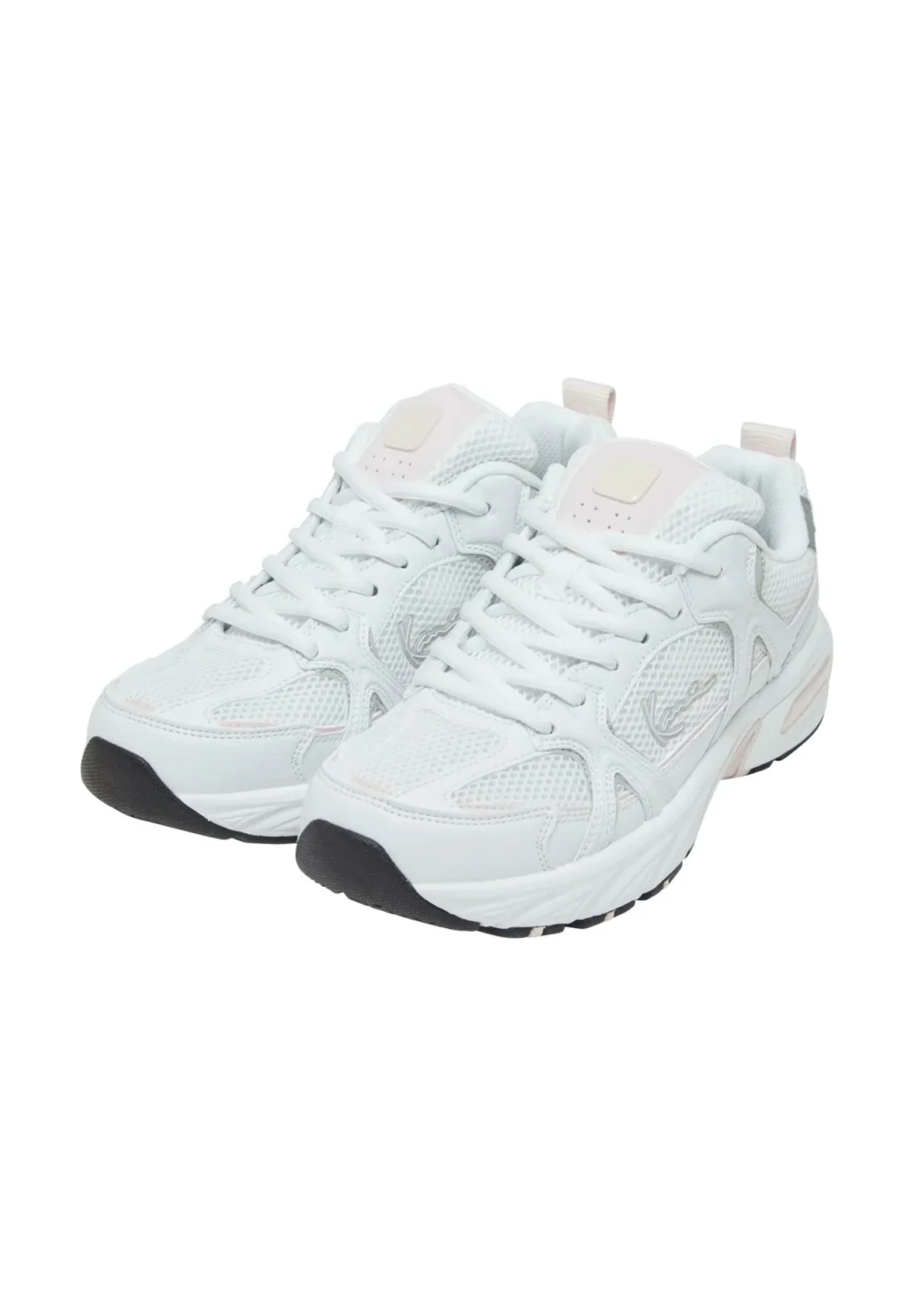 Τα Karl Kani Prime Runner – White/Pink trainers είναι ένα κομψό και άνετο ζευγάρι αθλητικών παπουτσιών σε αποχρώσεις του λευκού, ροζ και γκρι.