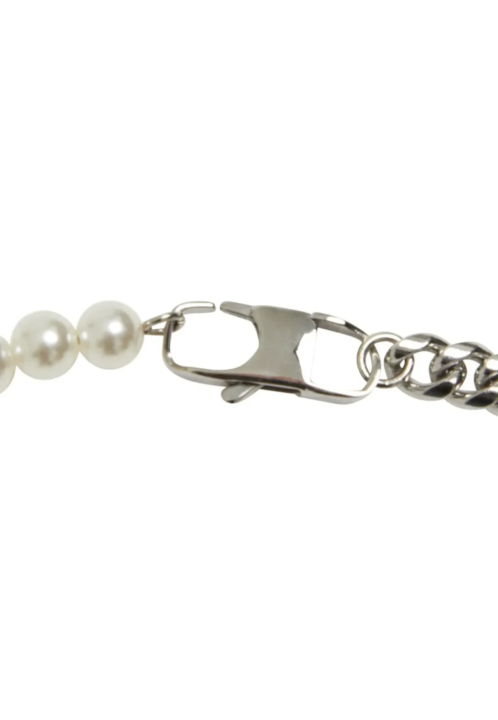 Αυτό το κομψό βραχιόλι Karl Kani Signature Pearl Bracelet Silver σε ασημί και λευκό αποπνέει διαχρονική κομψότητα.
