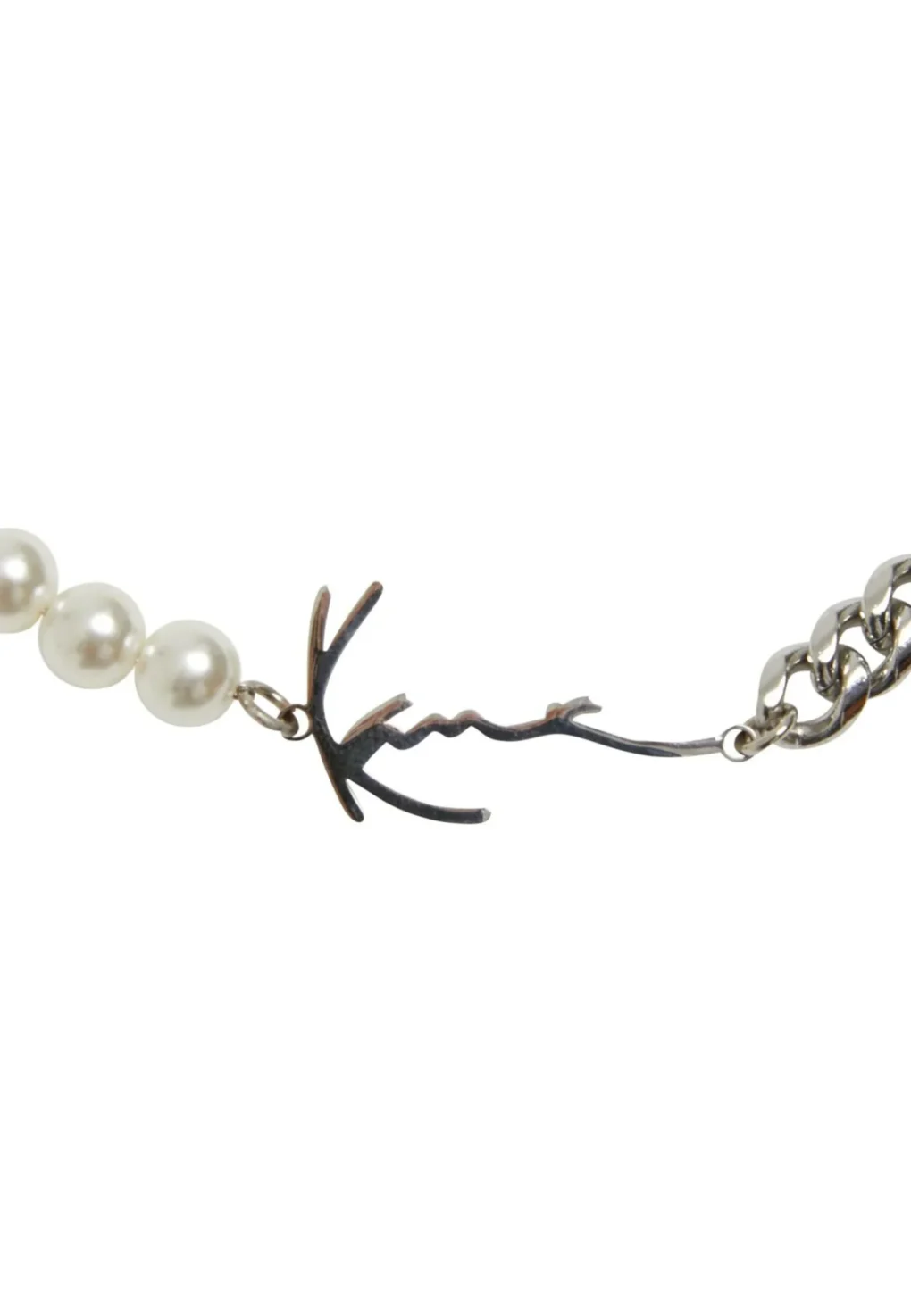 Αυτή η εντυπωσιακή Karl Kani Signature Pearl Chain προσθέτει μια μοντέρνα πινελιά στο στυλ σας. Οι ασημί και λευκοί τόνοι αποπνέουν κομψότητα, ενώ οι πέρλες προσδίδουν έναν διαχρονικό χαρακτήρα. Φορέστε την μόνη της ή συνδυάστε την με άλλα κοσμήματα για ένα μοναδικό look. Ιδανική για όσους θέλουν να ξεχωρίζουν και να τραβούν τα βλέμματα!