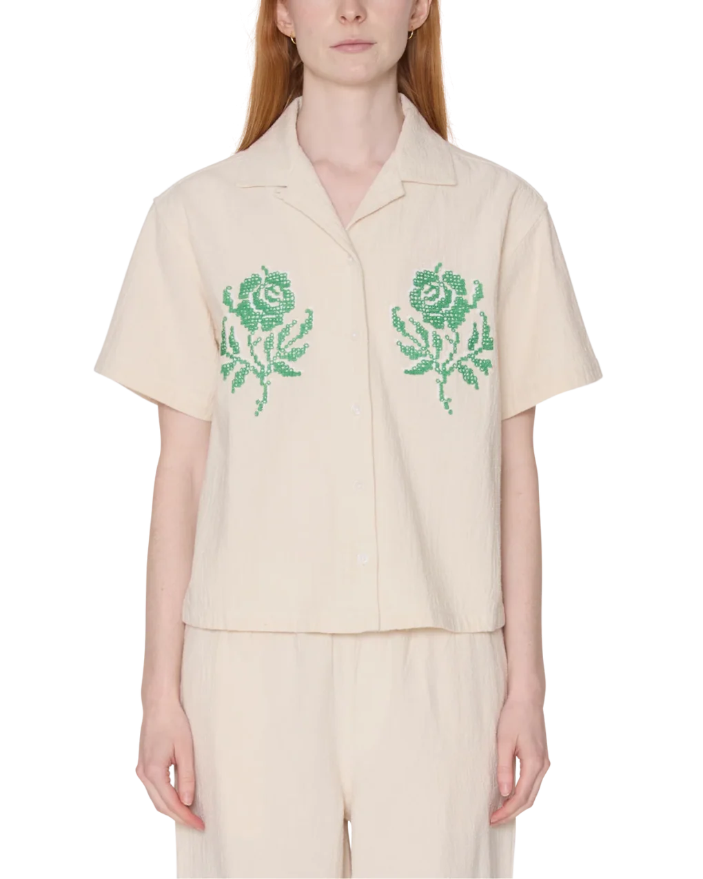 Το κεντητό πουκάμισο κοντομάνικο από τη συλλογή της Obey συνδυάζει casual αισθητική με μοντέρνο streetwear χαρακτήρα. Διαθέτει κουμπιά σε όλο το μπροστινό μέρος και διακριτικό κεντητό σχέδιο που προσθέτει μοναδικό στυλ. Η χαλαρή γραμμή (relaxed fit) προσφέρει άνεση και ελευθερία κινήσεων, ενώ το ίσιο τελείωμα στο κάτω μέρος το κάνει ιδανικό για καθημερινές εμφανίσεις.