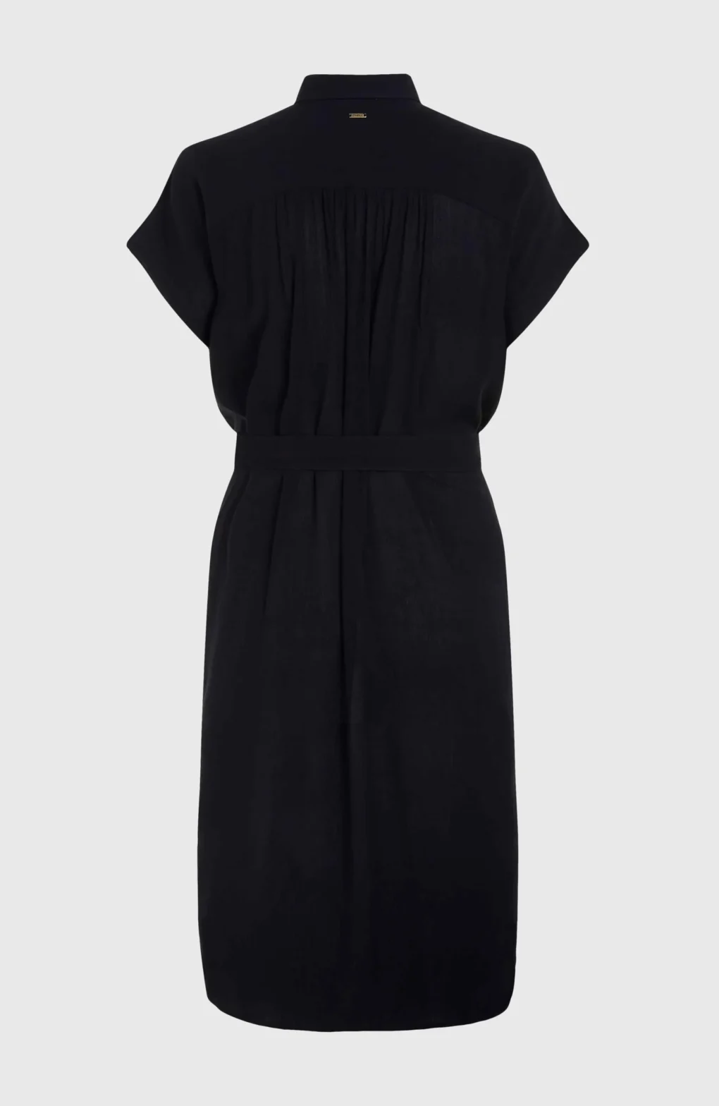 Το φόρεμα διαθέτει ζώνη δέσιμο που τονίζει τη μέση, προσδίδοντας έναν θηλυκό αέρα στην εμφάνιση. Το κλείσιμο μπροστά με κουμπιά προσφέρει ευκολία στο να φορεθεί και να αφαιρεθεί το φόρεμα. Ενώ προσθέτει επίσης ένα στοιχείο στυλ.