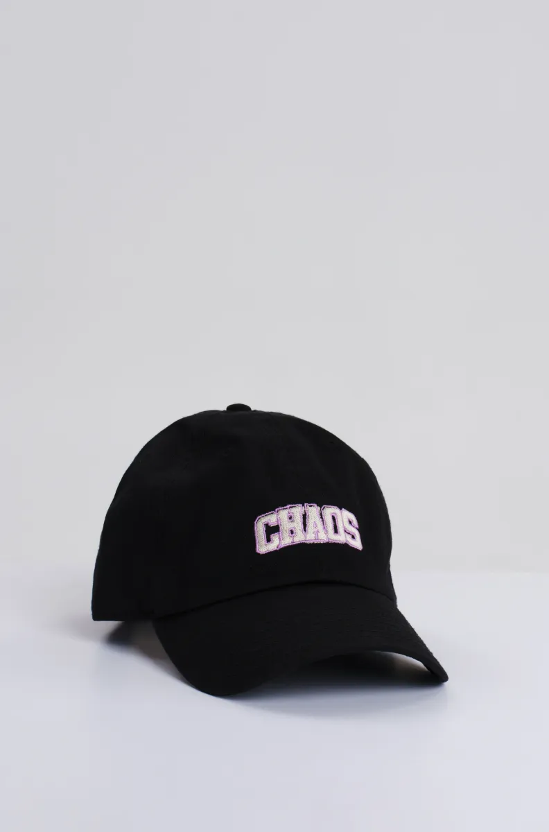 Κάντε μια sporty δήλωση με τα Chaos Caps μας. Αυτά τα καπέλα baseball από cotton twill διαθέτουν ρυθμιζόμενο μέγεθος με προσαρμόσιμη λουρά. Επιλέξτε ανάμεσα στο “Chaos” κεντημένο σε ροζ με μαύρο περίγραμμα σε λευκό φόντο ή λευκό με ροζ περίγραμμα σε μαύρο φόντο.