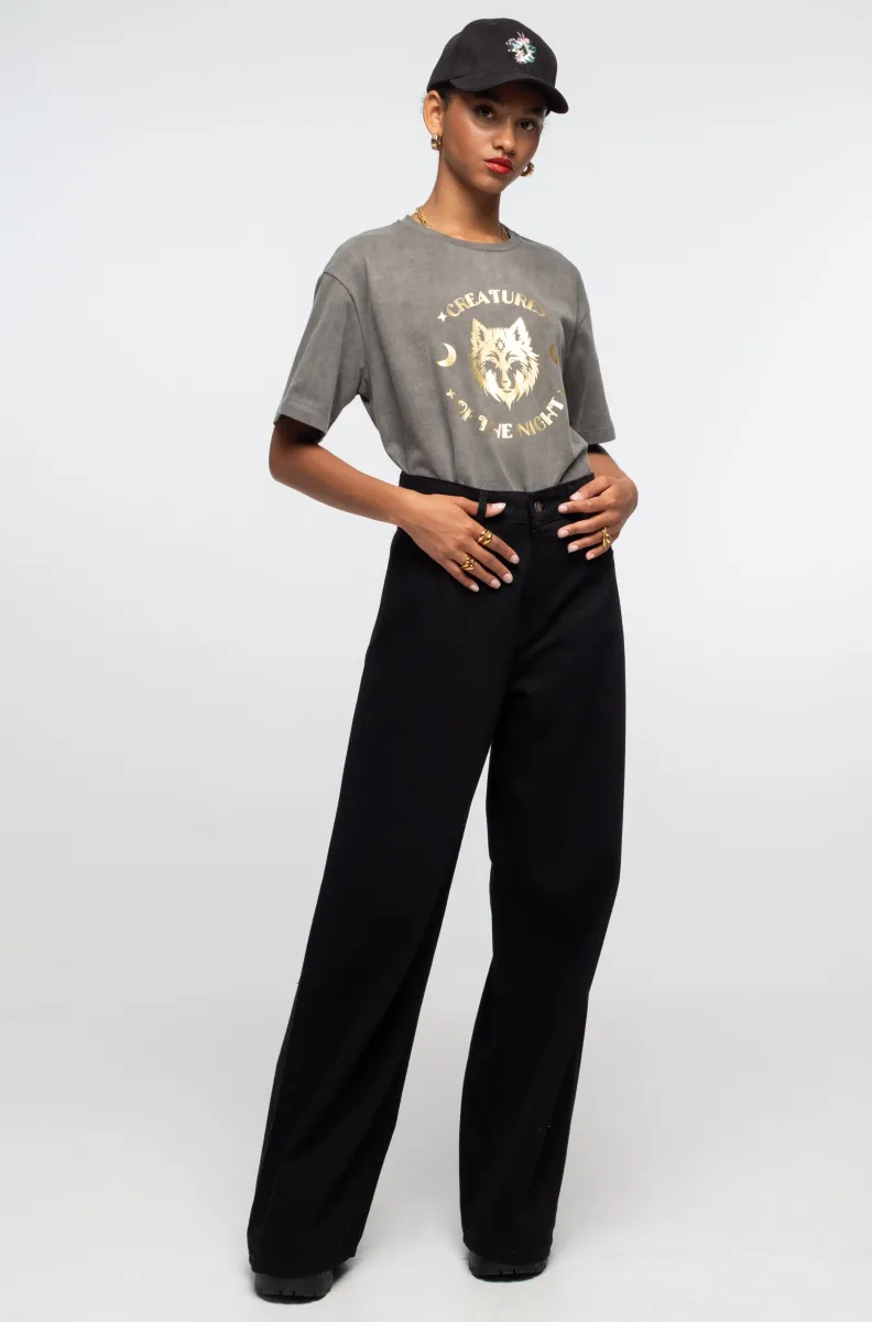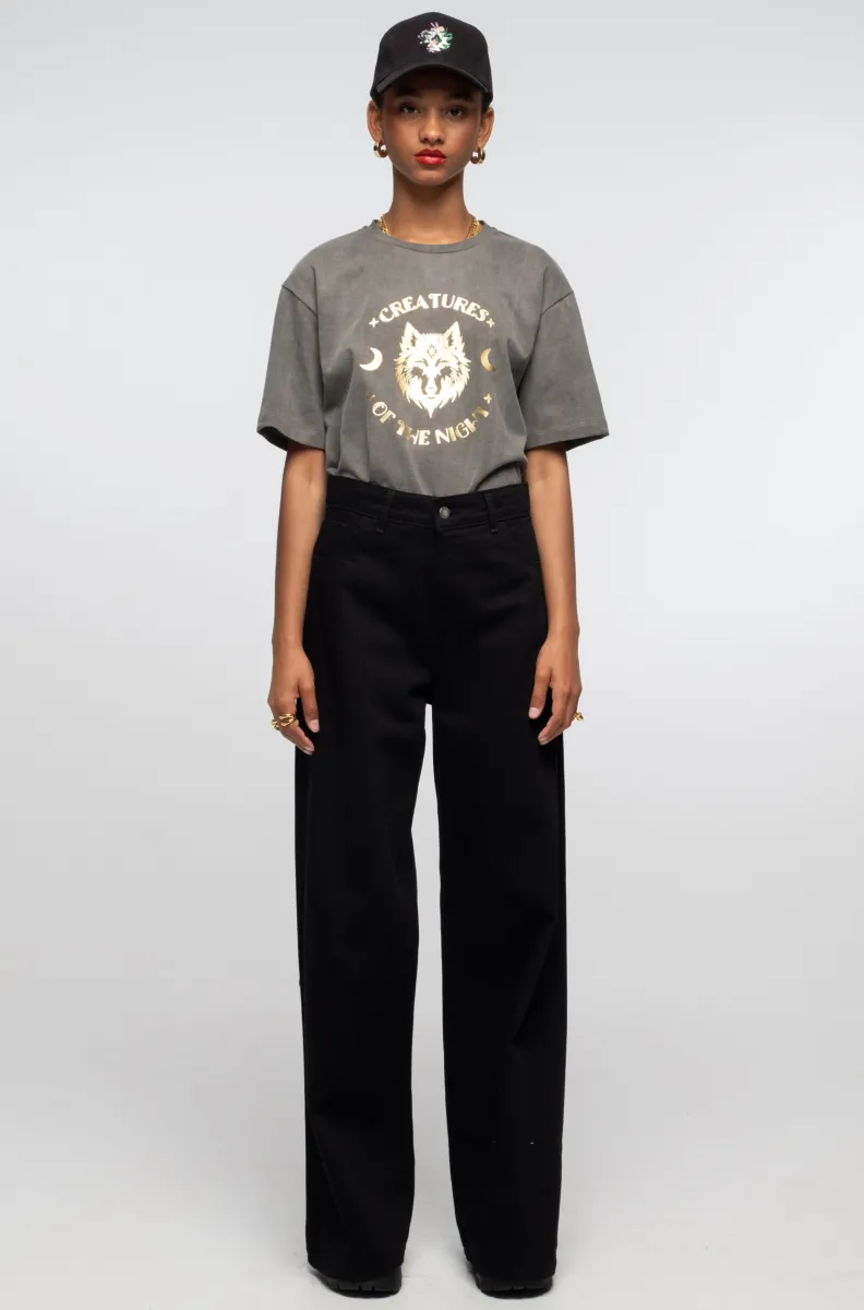 Το Creatures T-Shirt της Peace + Chaos συνδυάζει μυστικισμό και σύγχρονο streetwear. Κατασκευασμένο από βαρύ, ποιοτικό βαμβάκι, προσφέρει άνετη εφαρμογή και premium αίσθηση. Η διάσημη αισθητική του brand αποτυπώνεται στο χρυσό foil print με τη φράση “Creatures of the Night” και το εντυπωσιακό wolf-motif, δημιουργώντας ένα statement κομμάτι που ξεχωρίζει.