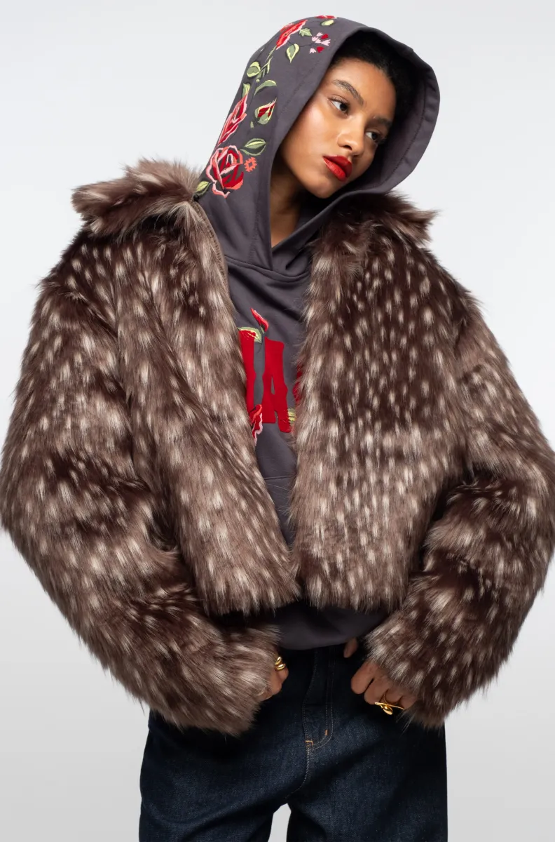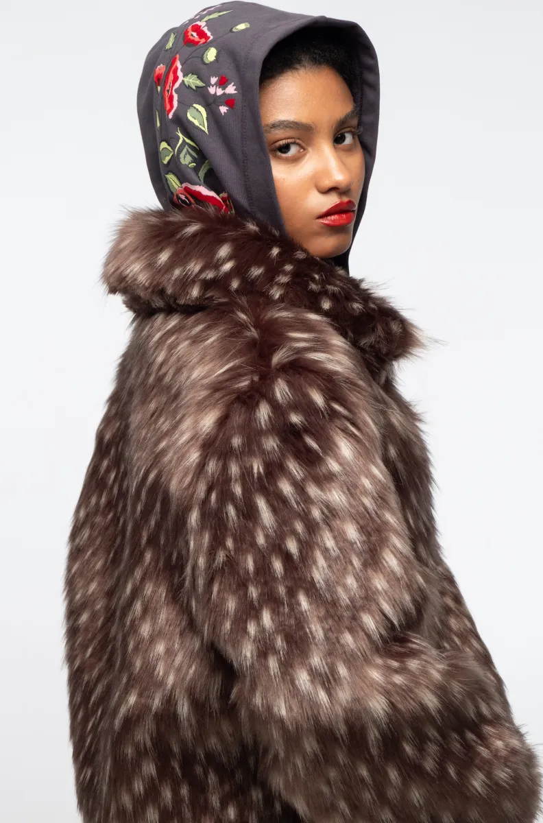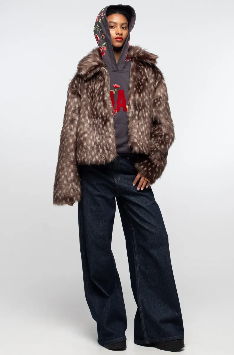 Αναβάθμισε το winter look σου με το Lavish Eco-Fur Coat, ένα statement κομμάτι που μιμείται την υφή και την πολυτέλεια της μακρύτριχης fox γούνας – χωρίς να χρησιμοποιεί ζωικά υλικά.