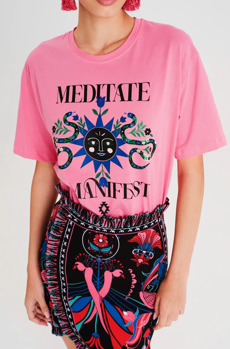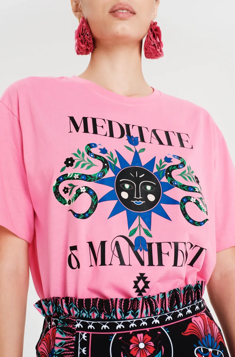 Σχεδιασμένο για χαλαρή εφαρμογή, το Manifestation T-Shirt συνδυάζει άνεση και στυλ με έναν μοναδικό τρόπο. Το εντυπωσιακό bold print με φίδια, ήλιο και συμβολικά στοιχεία εμπνέει θετική ενέργεια, ενθαρρύνοντάς σε να εκφράσεις τον εαυτό σου και να δημιουργήσεις τη δική σου πραγματικότητα.