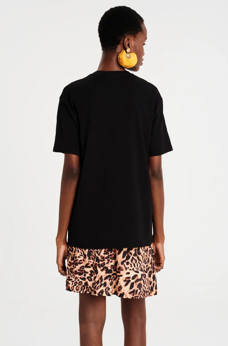 Κατασκευασμένο από άνετο βαμβάκι και σχεδιασμένο σε χαλαρή γραμμή, αυτό το T-shirt αποτελεί ιδανική επιλογή για καθημερινές εμφανίσεις με στυλ. Διατίθεται σε λευκό ή μαύρο, καλύπτοντας κάθε προτίμηση.