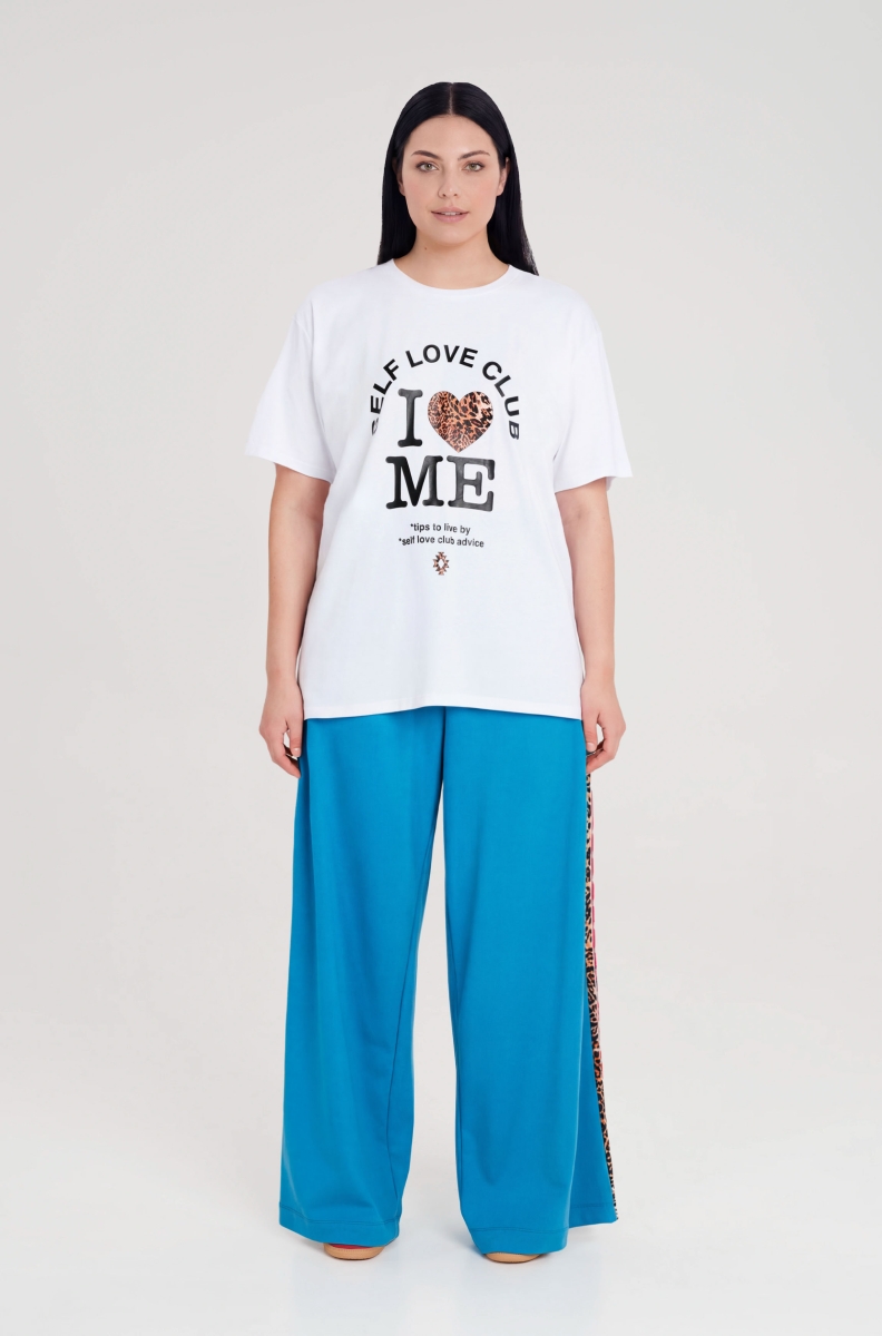 Με μήνυμα αυτοαγάπης, το Mindfulness T-Shirt ξεχωρίζει μέσα από ένα εντυπωσιακό bold print. Το μοτίβο καρδιάς και το σύμβολο Chaka συνδυάζουν exotic στοιχεία που ταιριάζουν ιδανικά με τις Pulse Mini & Long Skirts, καθώς και με το ριγέ detail του Mindfulness Pants.