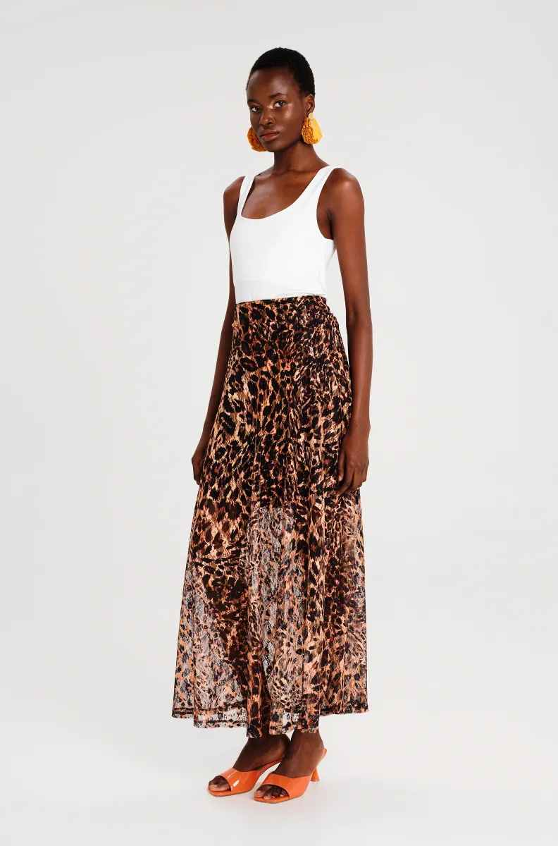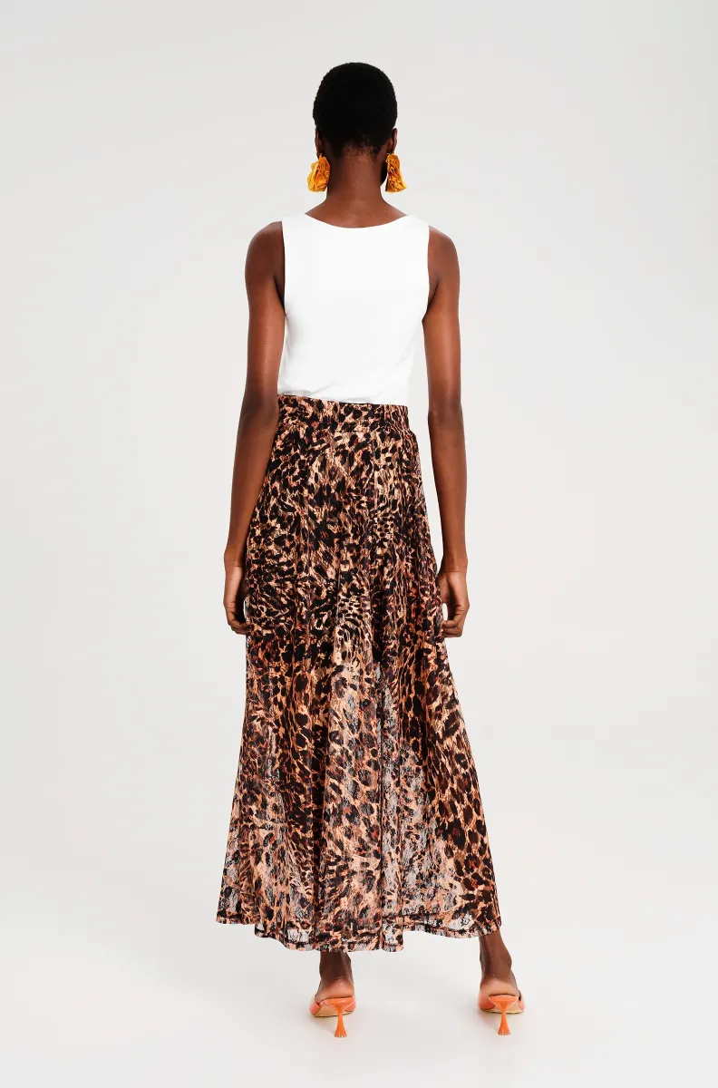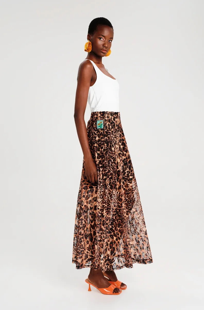 Η Pulse Long Skirt ξεχωρίζει με exotic all-over animal print σε ουδέτερους τόνους, συνδυάζοντας κομψότητα και statement στυλ. Η λεπτή, διάφανη δαντέλα πέφτει απαλά πάνω από το mini-length φόδρα και δημιουργεί μια μακριά, flowing σιλουέτα. Η ελαστική ζώνη στο πίσω μέρος εξασφαλίζει άνετη εφαρμογή, ενώ η μέση κάθεται ψηλά, προσφέροντας κομψή γραμμή. Η ειδική woven ετικέτα P+C προσθέτει μια ξεχωριστή λεπτομέρεια στυλ.