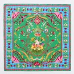 Αντιπροσωπεύοντας μια δυναμική, θηλυκή ενέργεια, το Reptile Scarf μας αναδεικνύει ιερά ζώα, μοτίβα Chaka και αρχαίους συμβολισμούς. Με συμμετρικό placement print, αυτό το τετράγωνο σατέν φουλάρι περιλαμβάνει αποχρώσεις του πράσινου και του χρυσού πάνω σε ασπρόμαυρο φόντο, με κόκκινες λεπτομέρειες. Συνδυάστε τα Reptile print outfits σας με αυτό το αξεσουάρ που ταιριάζει απόλυτα στο ίδιο μοτίβο.