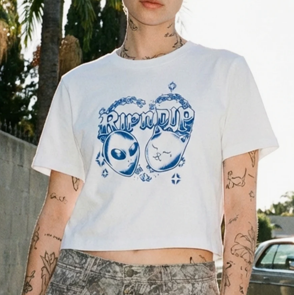 Γυναικείο cropped t-shirt με μοντέρνο και θηλυκό χαρακτήρα, ιδανικό για casual και streetwear εμφανίσεις. Κατασκευασμένο από 100% βαμβάκι υψηλής ποιότητας (240 GSM), προσφέρει πιο σταθερή υφή και άνετη εφαρμογή.