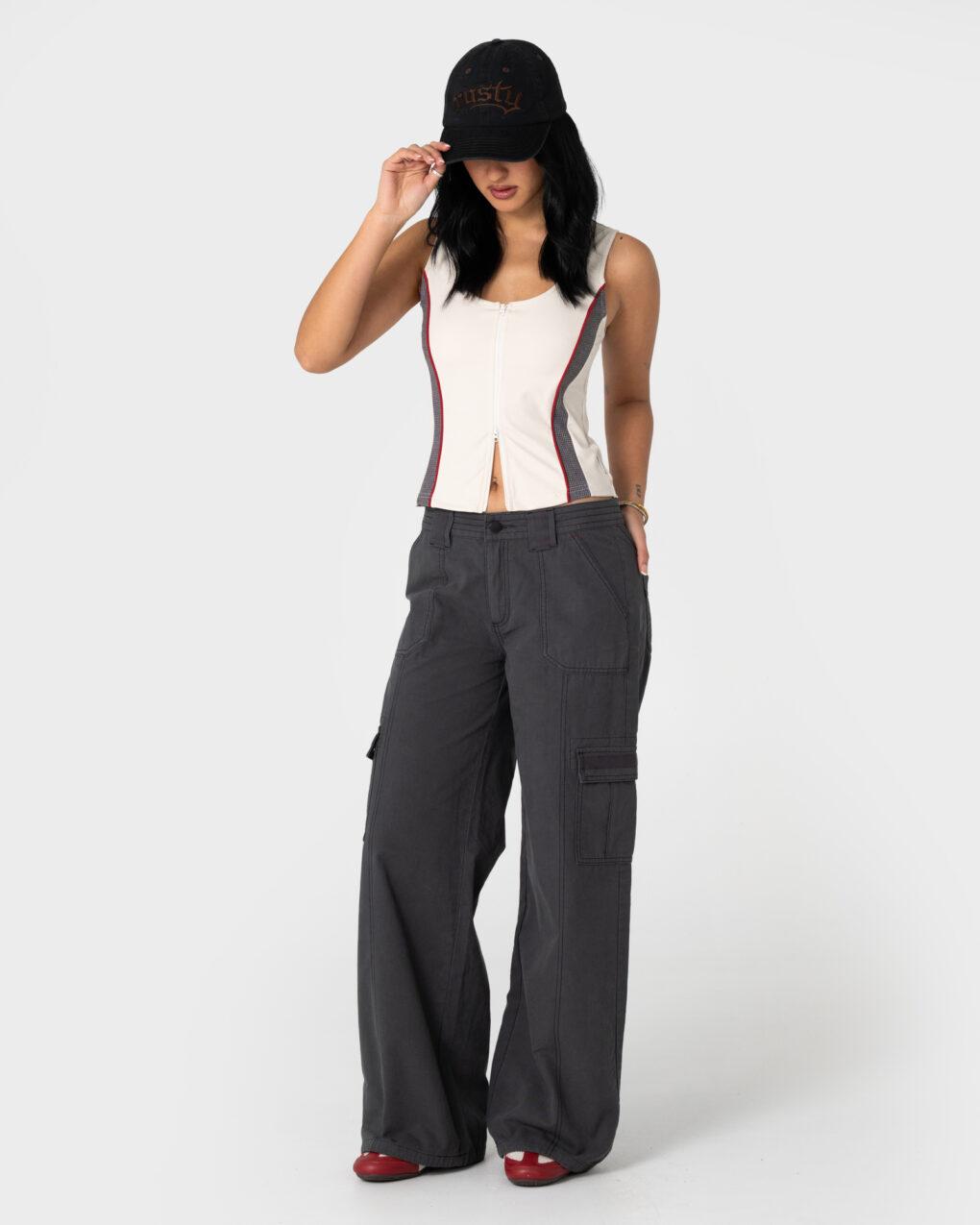 Rusty Contrast Zip Through Tank Top