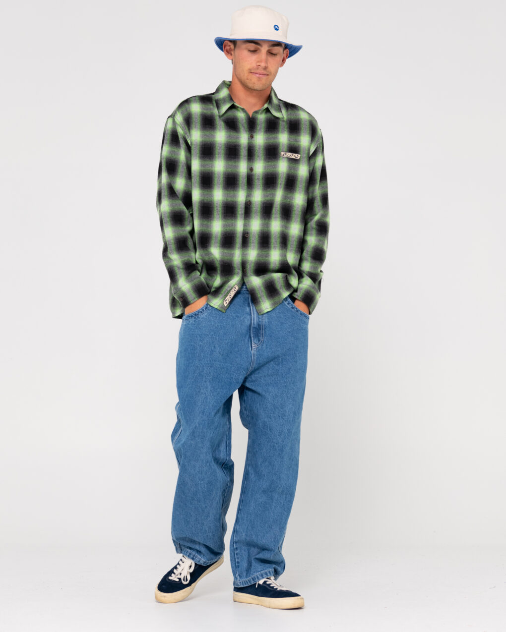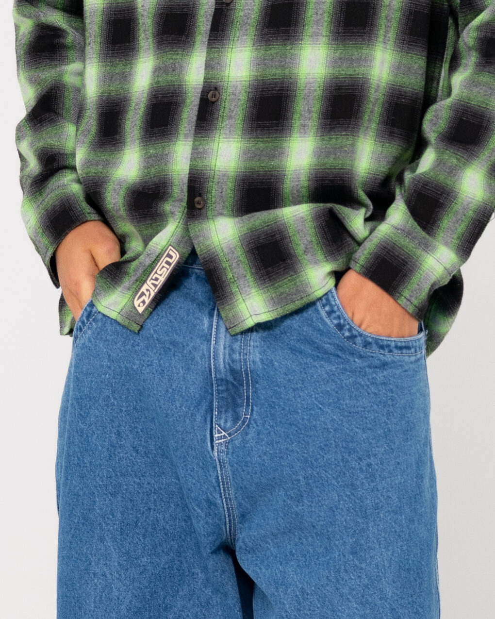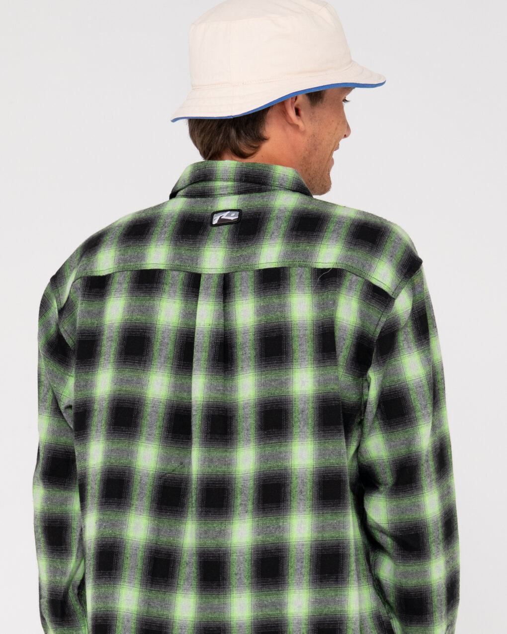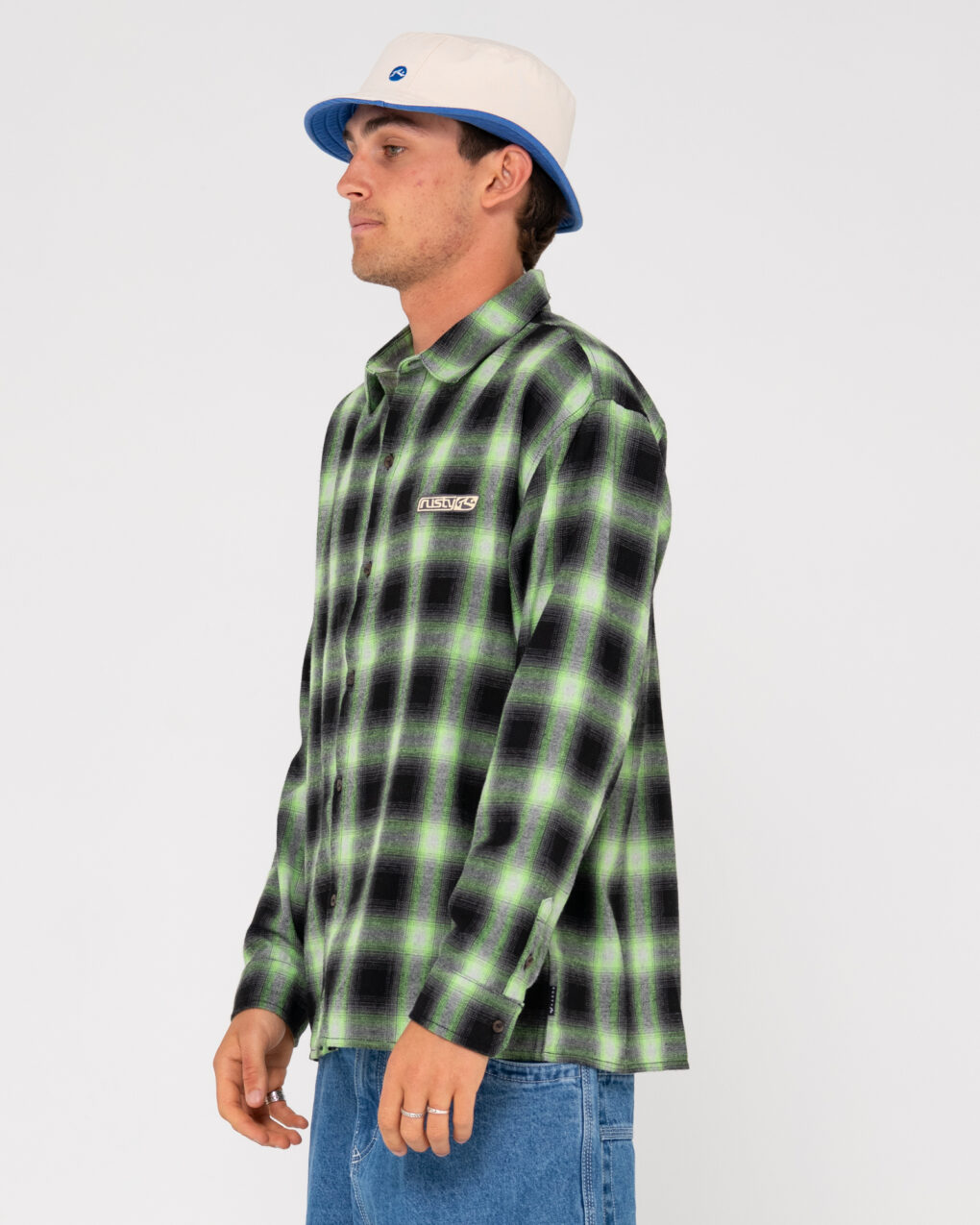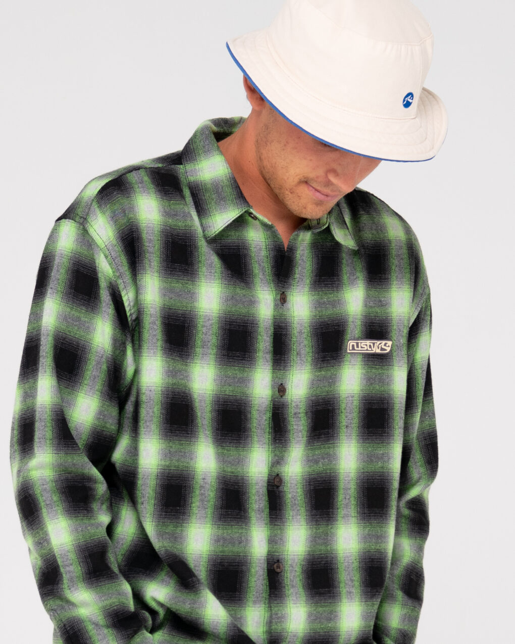 Το Rusty Neon Dreams Long Sleeve Shirt – Lime Green διαθέτει χαλαρή εφαρμογή (Relaxed Fit) και έχει υποστεί πλύση με σιλικόνη (Silicon Wash) για απαλή αίσθηση και σταθερότητα μεγέθους μετά το πλύσιμο. Το ύφασμα είναι Poly Blend Plaid με σύνθεση 65% πολυεστέρα και 35% βαμβάκι, προσφέροντας άνεση και ανθεκτικότητα.