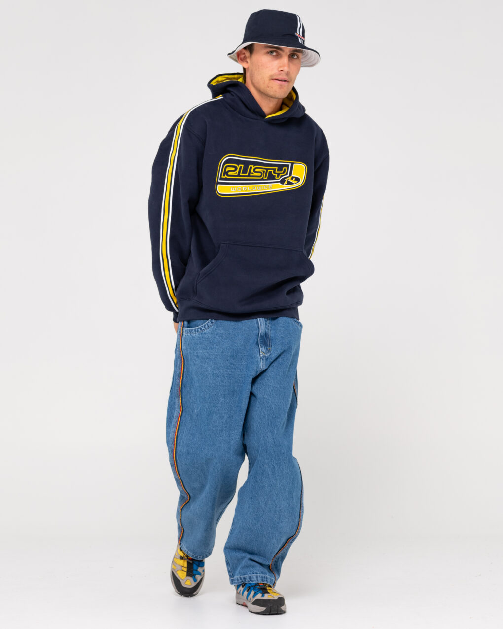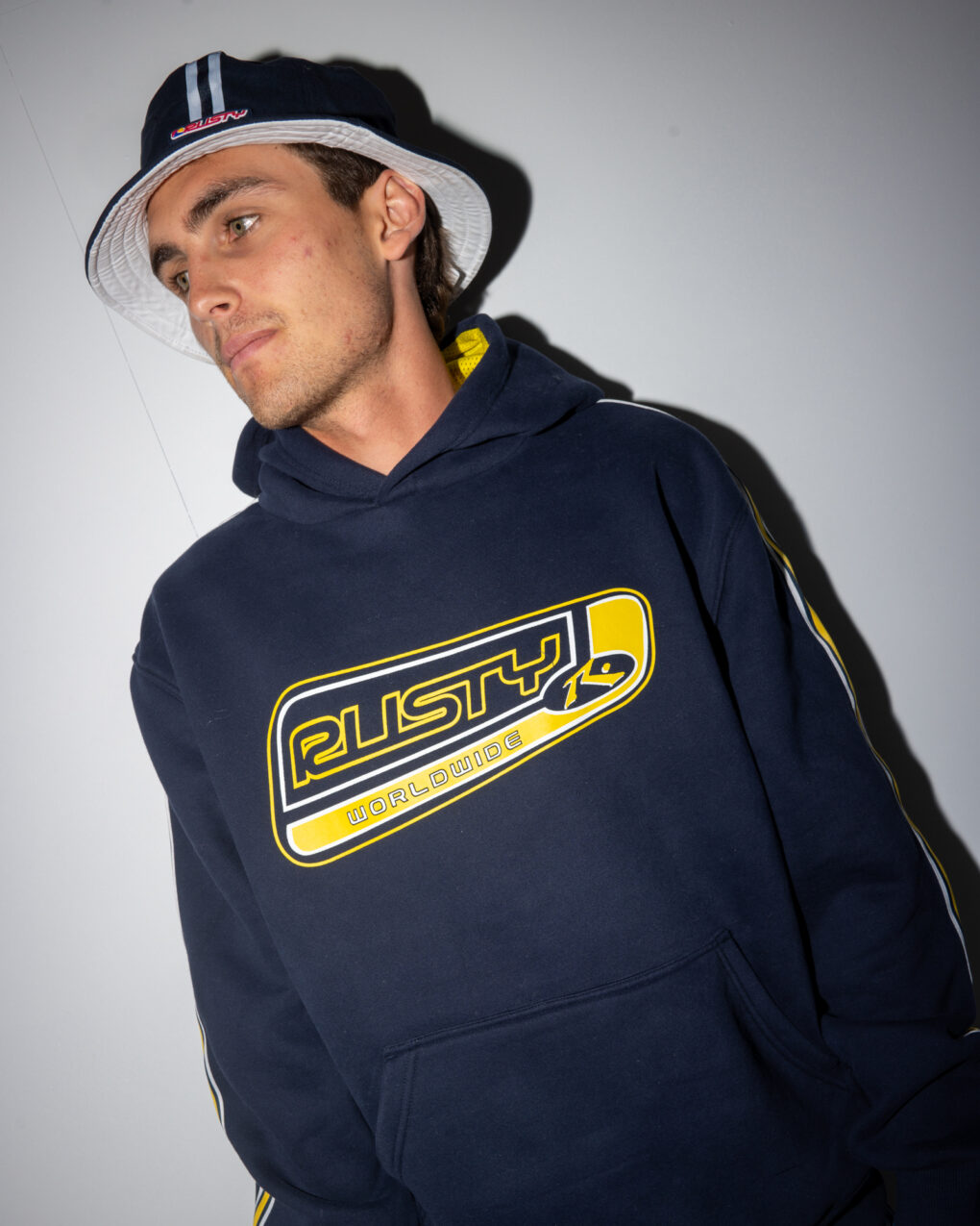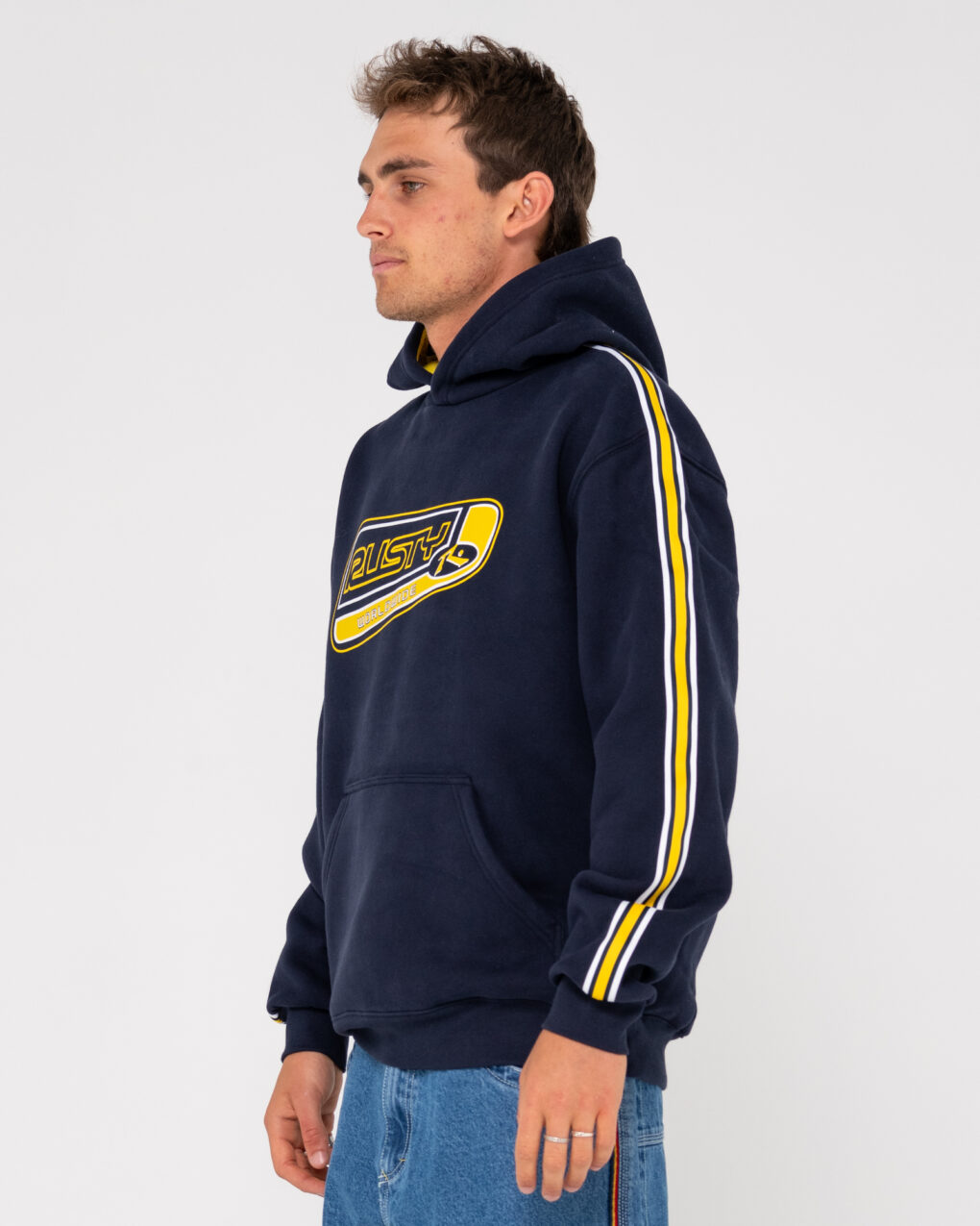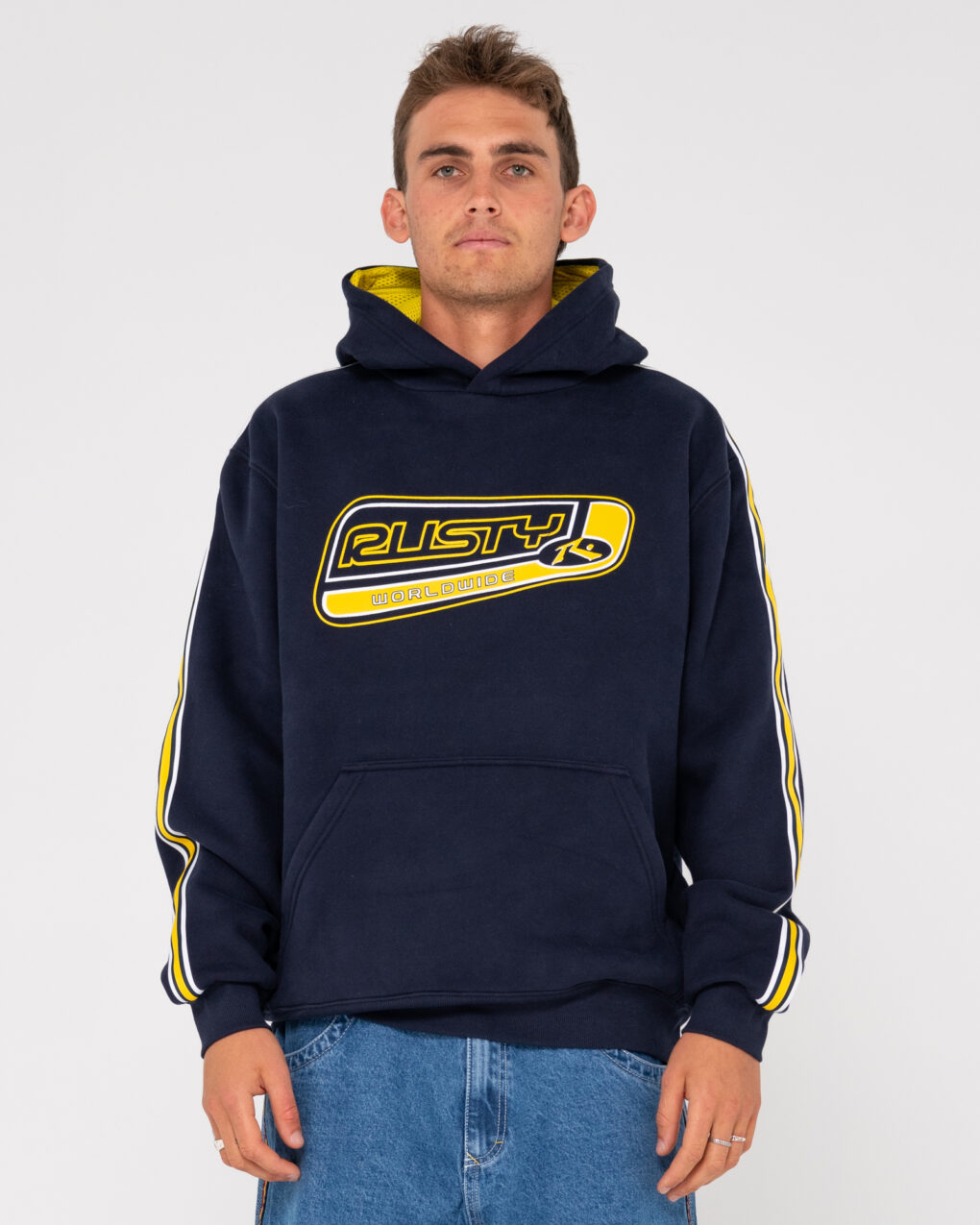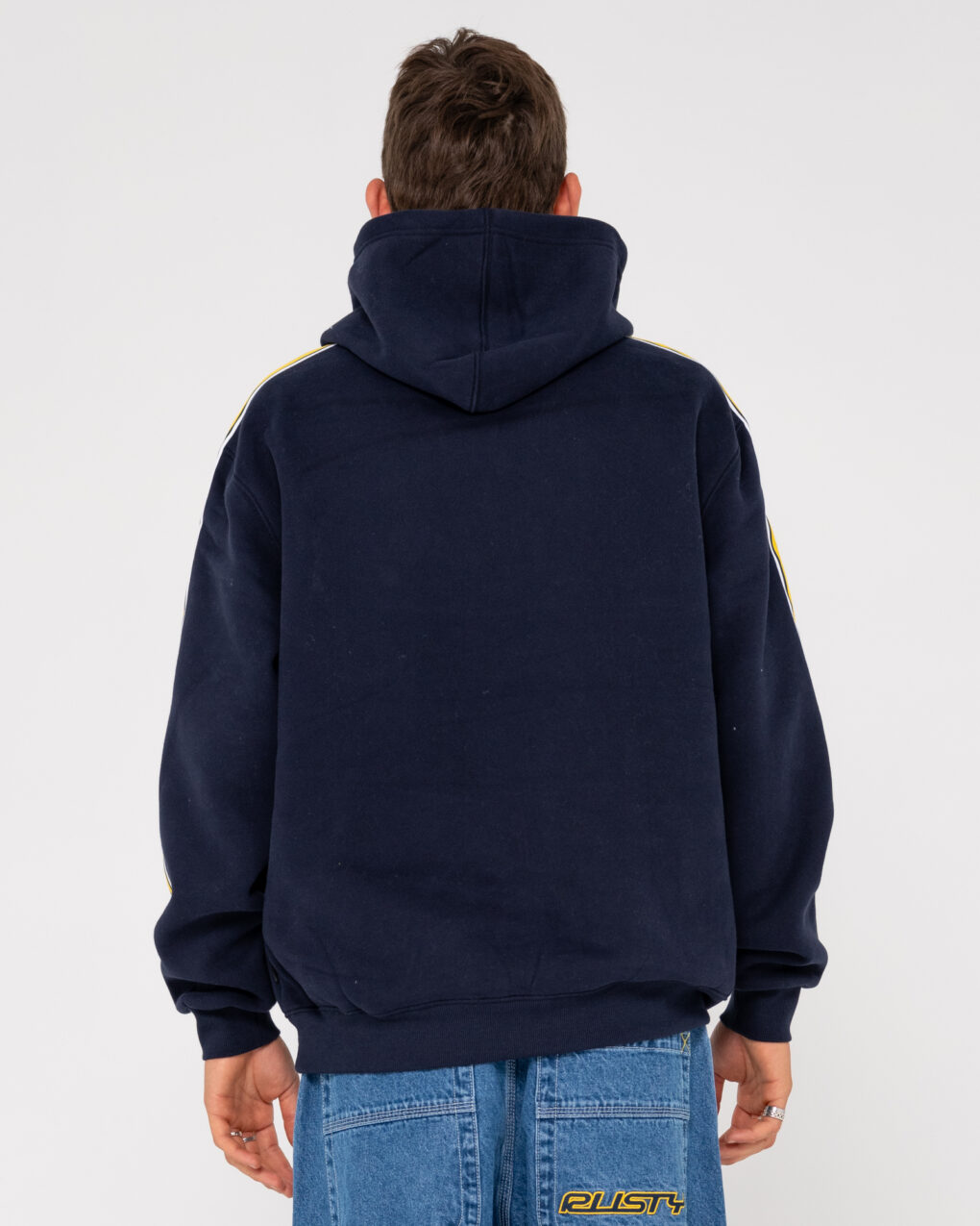 Το Rusty Roadhouse Taped Hooded Fleece Navy , μαζί με ταινία στα μανίκια, είναι κατασκευασμένο από 360gsm βουρτσισμένο fleece για άνεση και ζεστασιά.