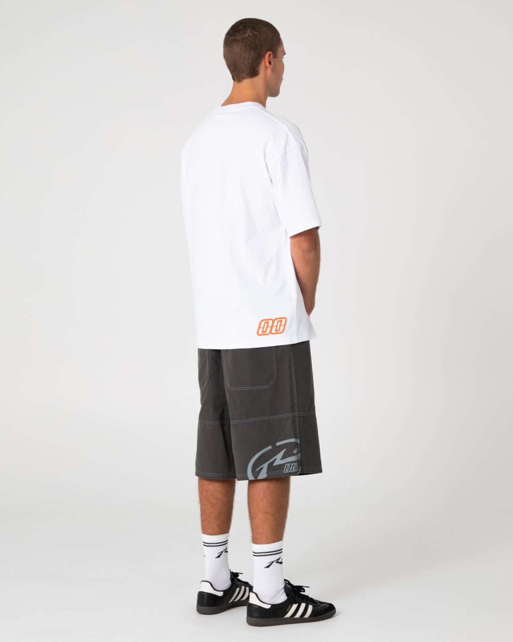 Αναβάθμισε το streetwear στυλ σου με αυτό το baggy twill σορτς με σταθερή μέση και μοντέρνα Y2K αισθητική. Το χαρακτηριστικό “00” print στο πίσω μέρος (δεξί πόδι) προσθέτει δυναμικό χαρακτήρα και ξεχωριστό urban ύφος.