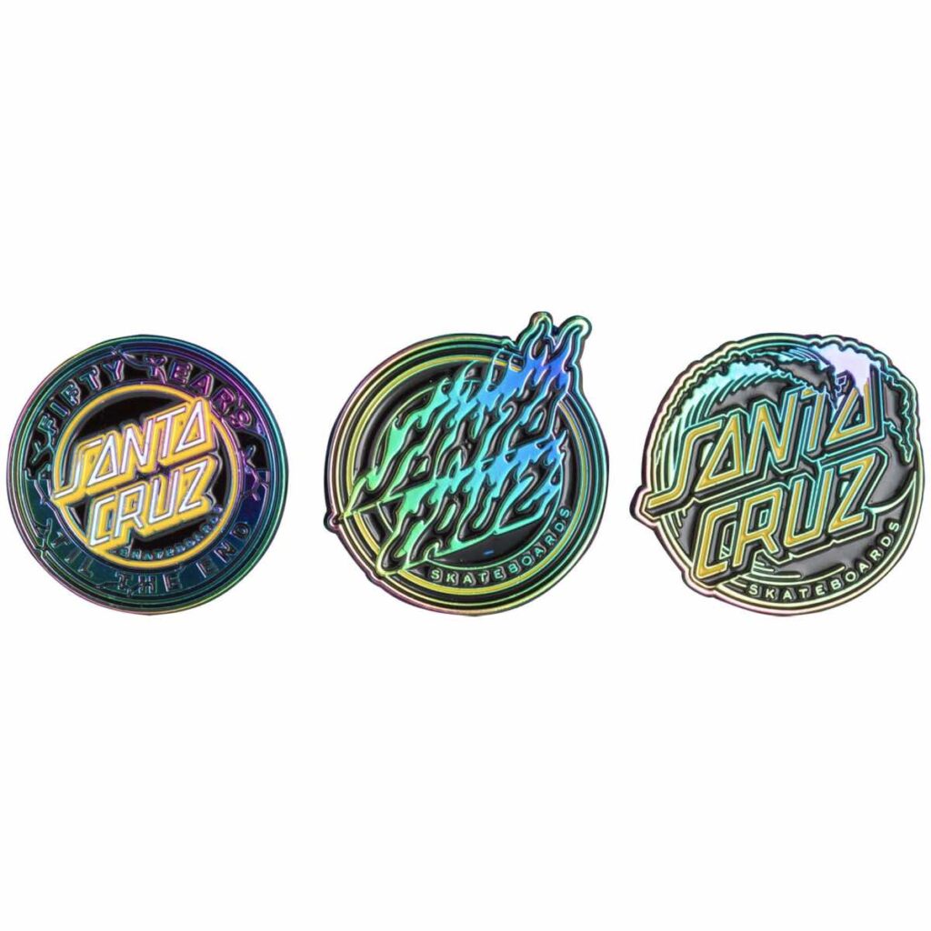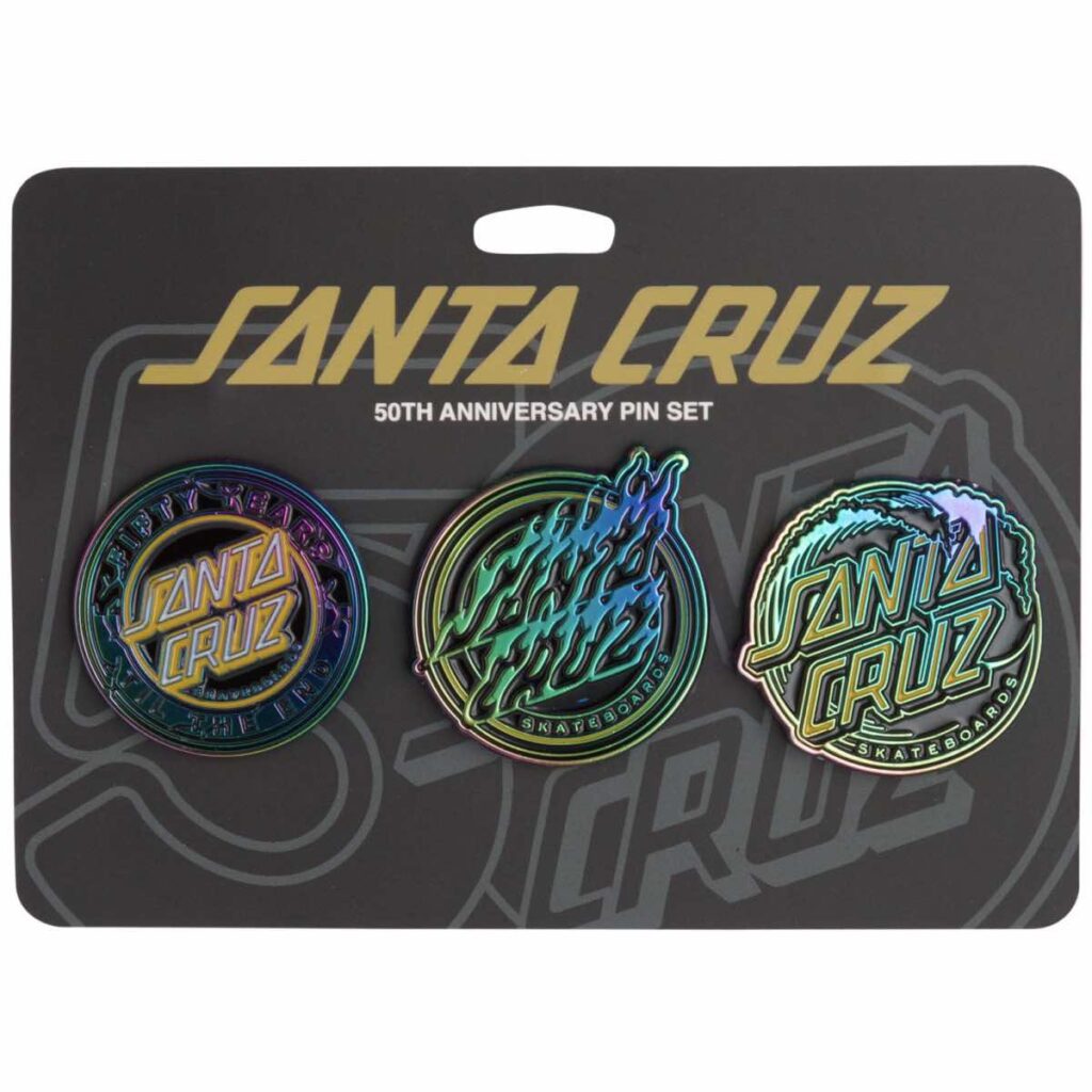 3 is always better than 1! Pay homage to your favorite skate brand with the Santa Cruz 50th Anniversary 3 Piece Pin Set!