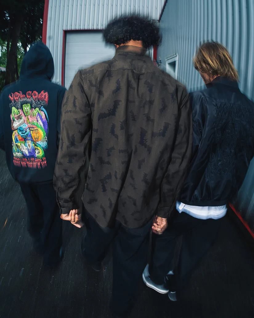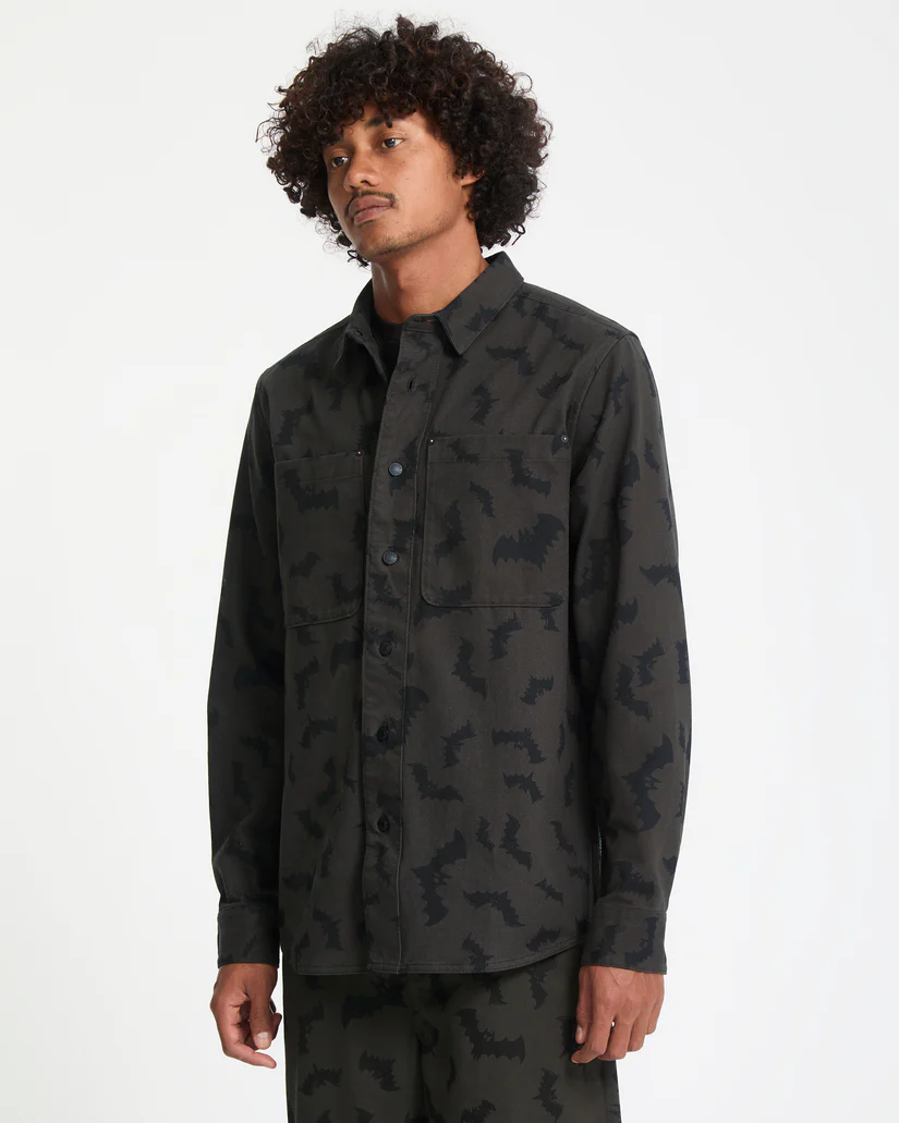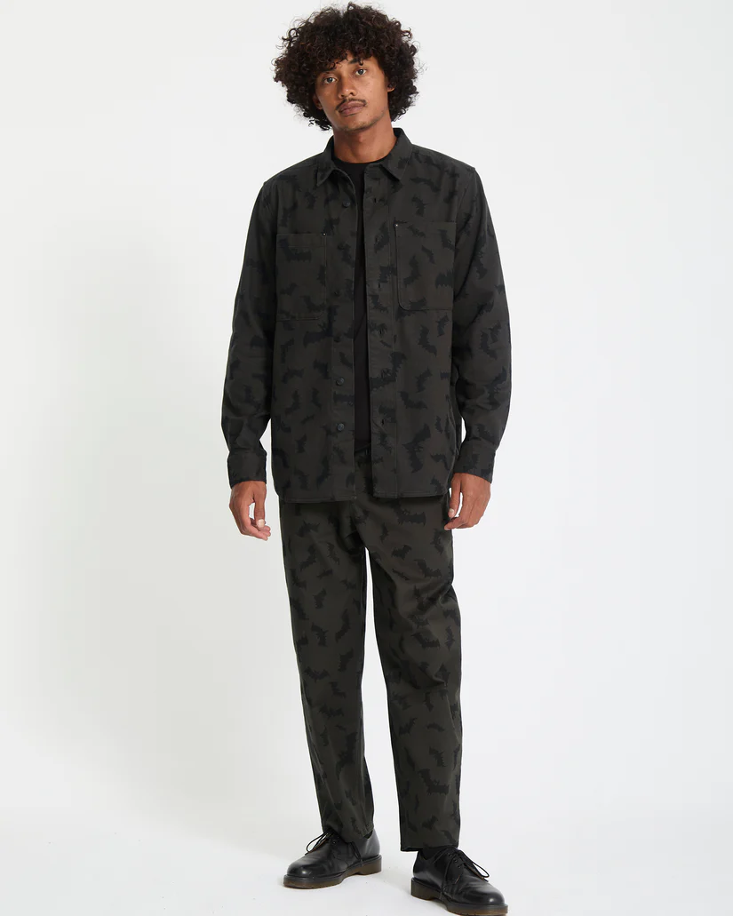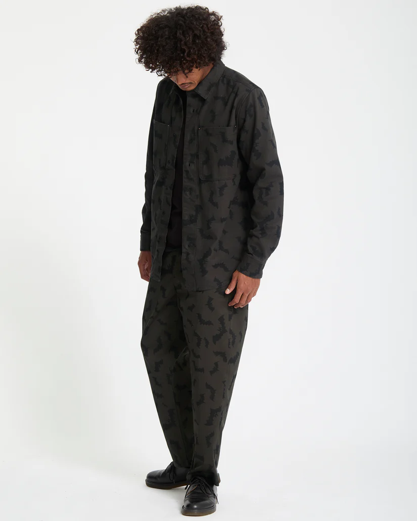 Το J.J. Villard Shirt είναι ένα statement κομμάτι που συνδυάζει workwear αισθητική με καλλιτεχνική έκφραση. Με all-over bat print σχεδιασμένο από τον Featured Artist J.J. Villard, το πουκάμισο ξεχωρίζει με τολμηρό χαρακτήρα και underground ύφος, ενώ η κλασική ίσια εφαρμογή προσφέρει άνεση και εύκολο layering.