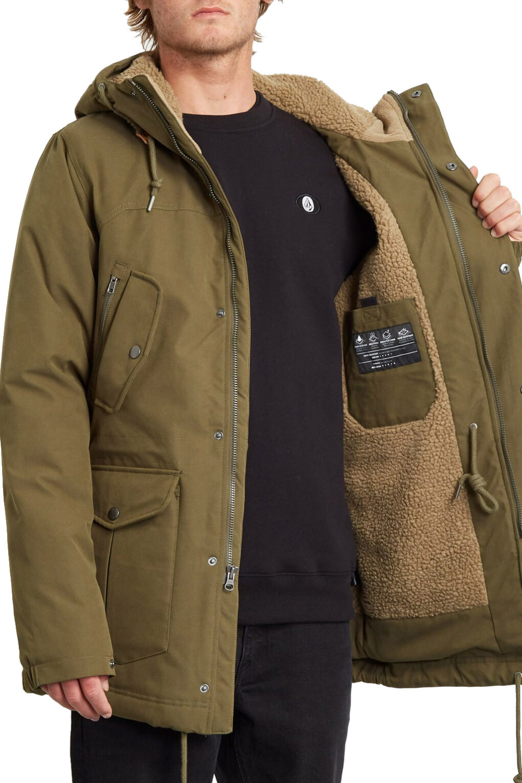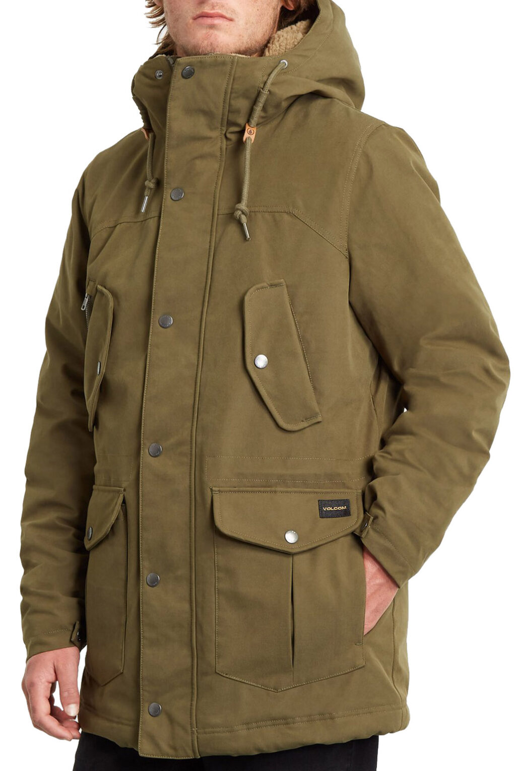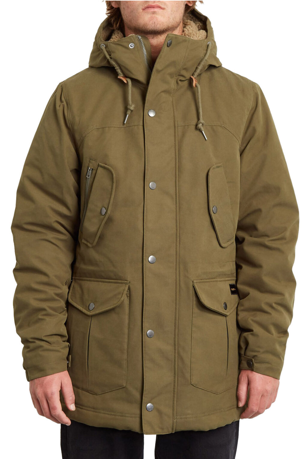 - Μπουφάν parka από βαμβακερό καμβά με αδιαβροχοποίηση 5Κ & εσωτερική επένδυση sherpa. Ψηλός λαιμός & σταθερή κουκούλα. Κλείσιμο με φερμουάρ & πατιλέτα με μεταλλικά clips. Έξι εξωτερικές τσέπες & μία στο εσωτερικό. Ρυθμιζόμενες μανσέτες & εσωτερικό κορδόνι προσαρμογής στη μέση & στο τελείωμα. Ετικέτα logo Volcom.