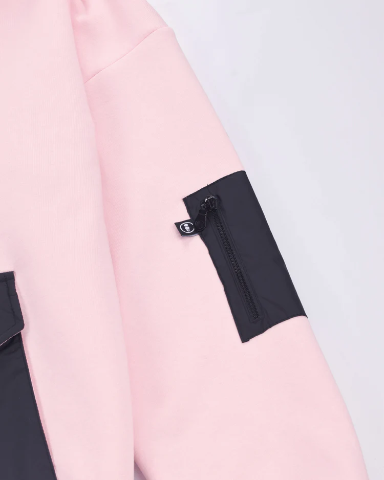 Το Enigma Baby Pink Women Hoodie συνδυάζει θηλυκό ύφος με λειτουργικό design. Η απαλή ροζ απόχρωση συναντά το windbreaker nylon top, δημιουργώντας ένα hoodie που ξεχωρίζει τόσο σε εμφάνιση όσο και σε πρακτικότητα. Με διπλή καγκουρό τσέπη με κουμπιά, τσέπη στο μανίκι και silk-printed λεπτομέρειες, είναι ένα κομμάτι που δίνει χαρακτήρα σε κάθε outfit.