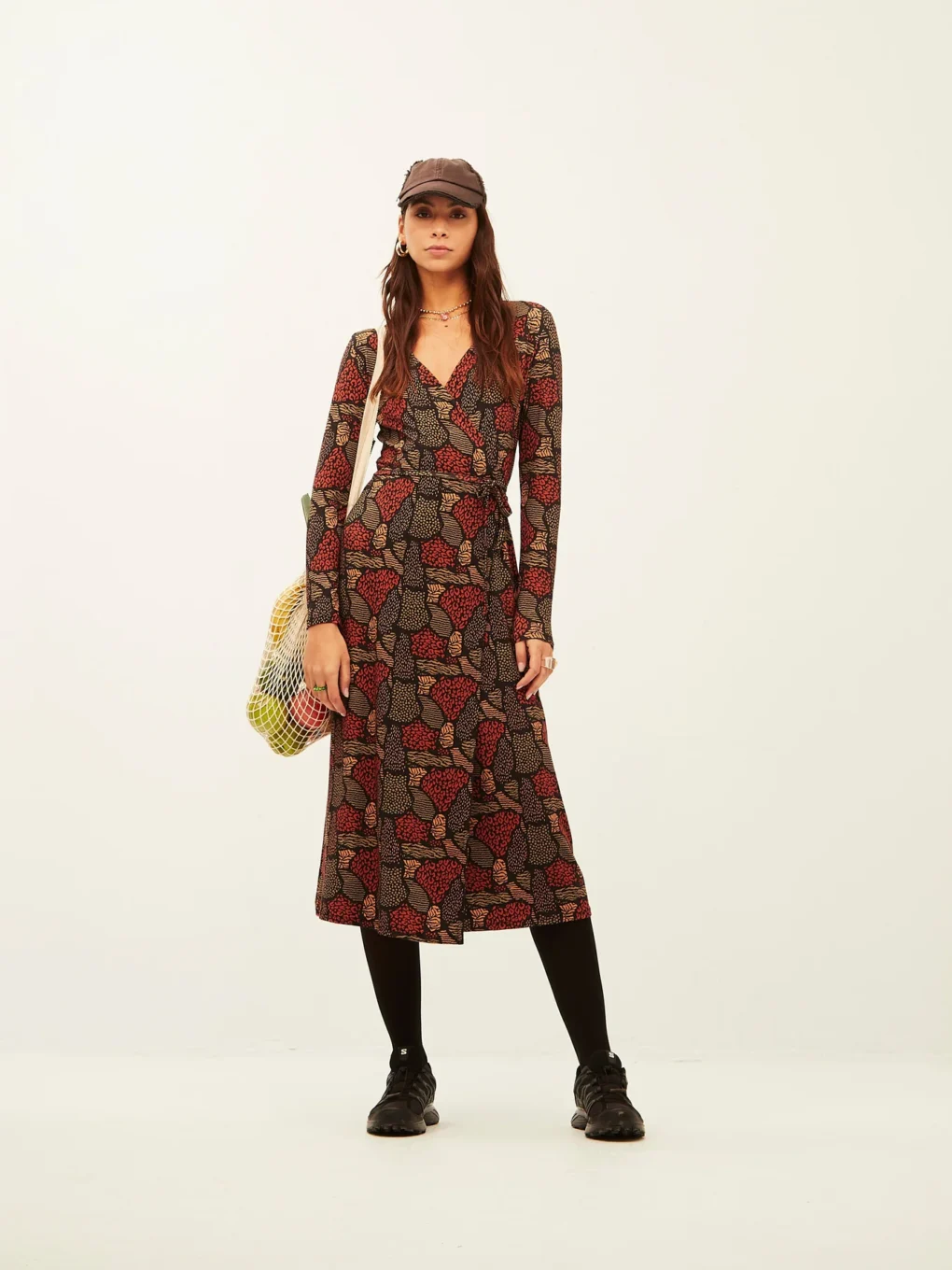 Αυτό το κομψό φόρεμα σε καφέ μοτίβο Brown Texture προσφέρει μια εκλεπτυσμένη εμφάνιση, ιδανική για καθημερινές και βραδινές εξόδους. Διαθέτει V-λαιμόκοψη για θηλυκή πινελιά, κόμπο στη μέση που αναδεικνύει τη σιλουέτα και κόψιμο στη φούστα για κίνηση και άνεση.