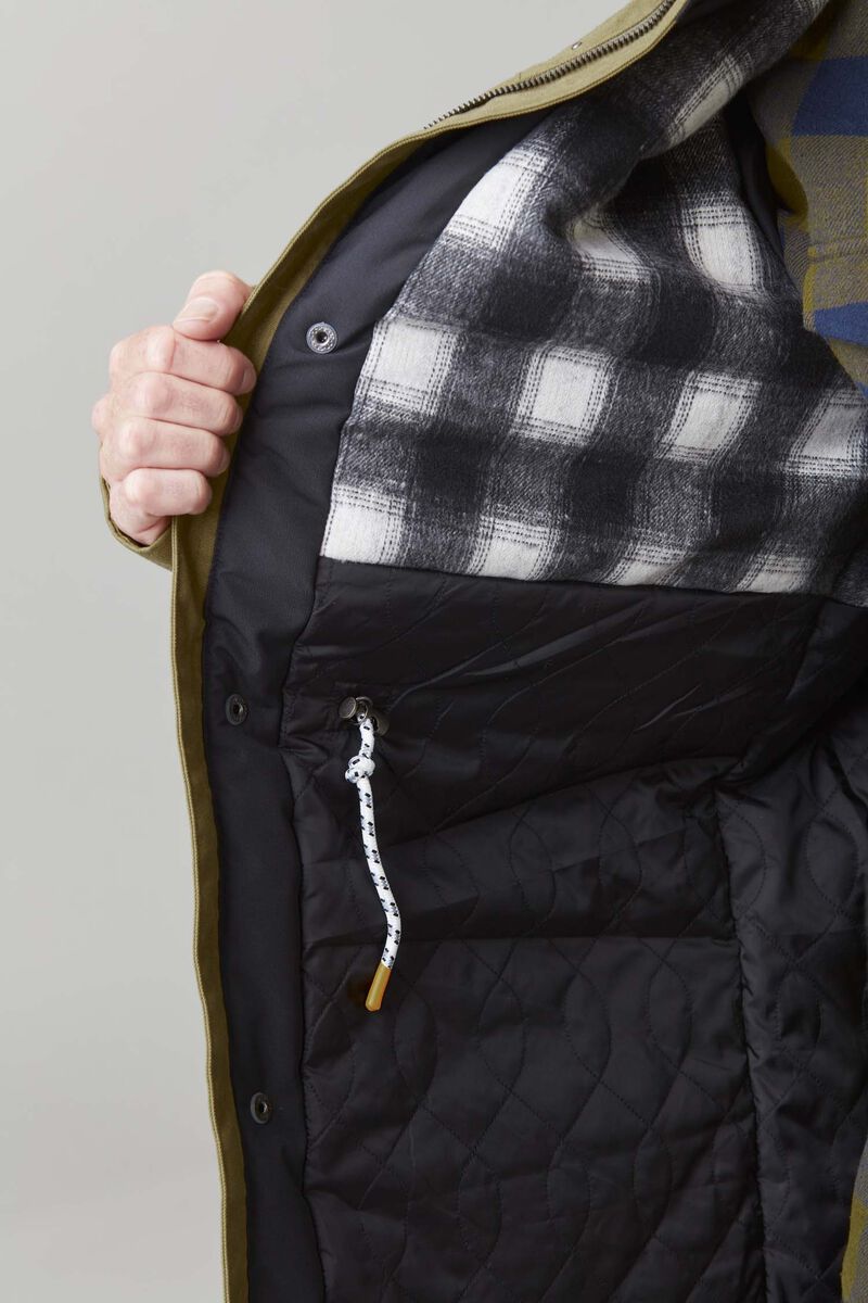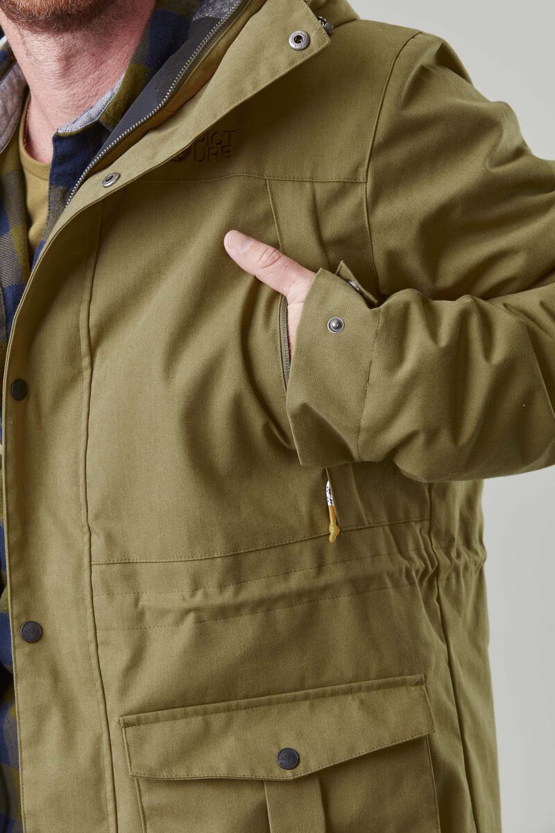 The Doaktown Jacket is a warm parka jacket. Designed for versatility and protection against unpredictable fall and winter weather, it is sustainably crafted from a recycled polycotton canvas. It features thick recycled synthetic insulation, and a PFC-free durable water repellent treatment to keep you warm and dry during the coldest days. It comes equipped with multiple pockets create a utilitarian-inspired look as well as provide the functionality of an everyday winter jacket. For more comfort and function, the hood has adjustable drawcords and comes with a soft flannel lining inside. This parka jacket is the all-time classic parka for everyday use, revisited by Picture.